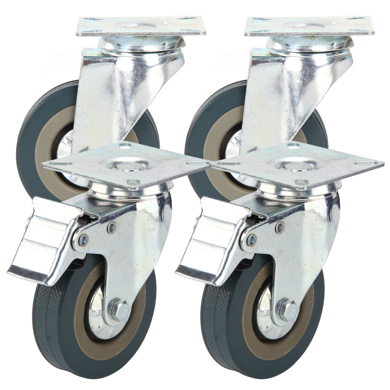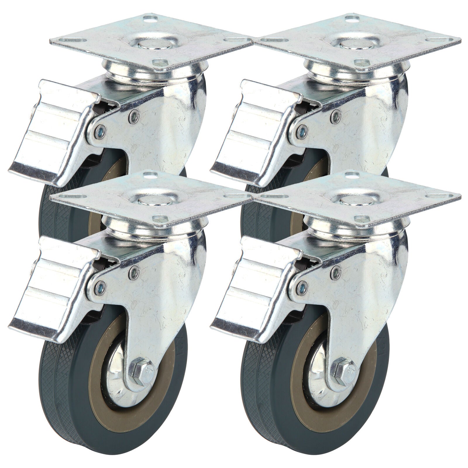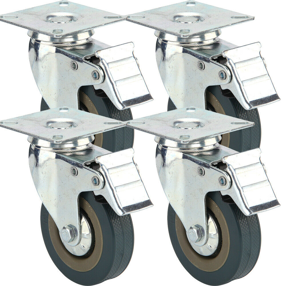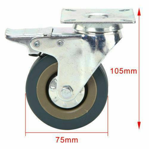4 X Heavy Duty 75mm Rubber Swivel Castor Wheels Trolley Caster Brake 360KG UK