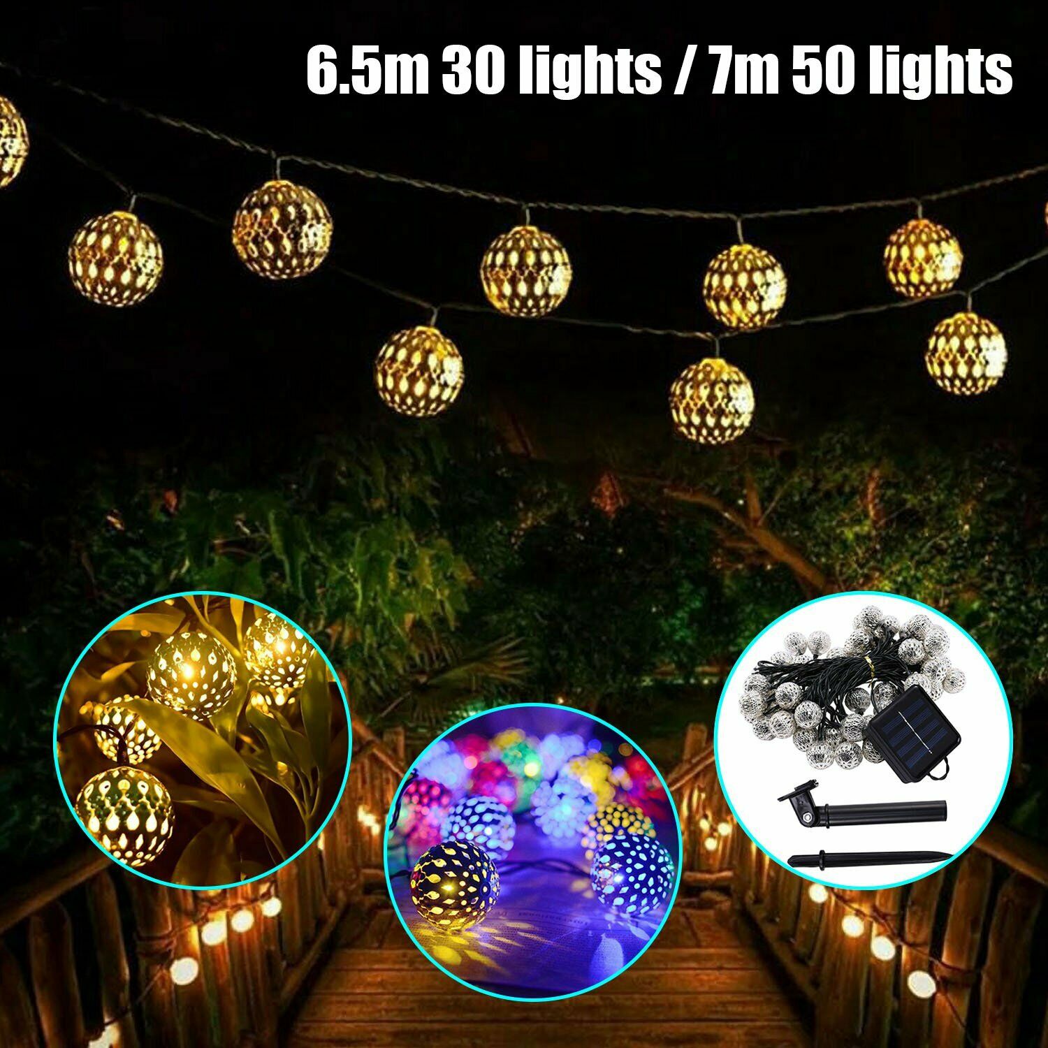 50 LED Moroccan Solar Garden String Lights Hanging Lantern Fairy Light Outdoor