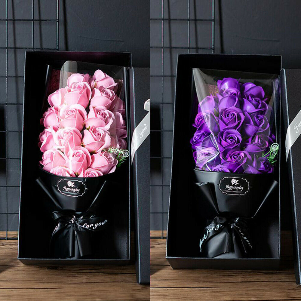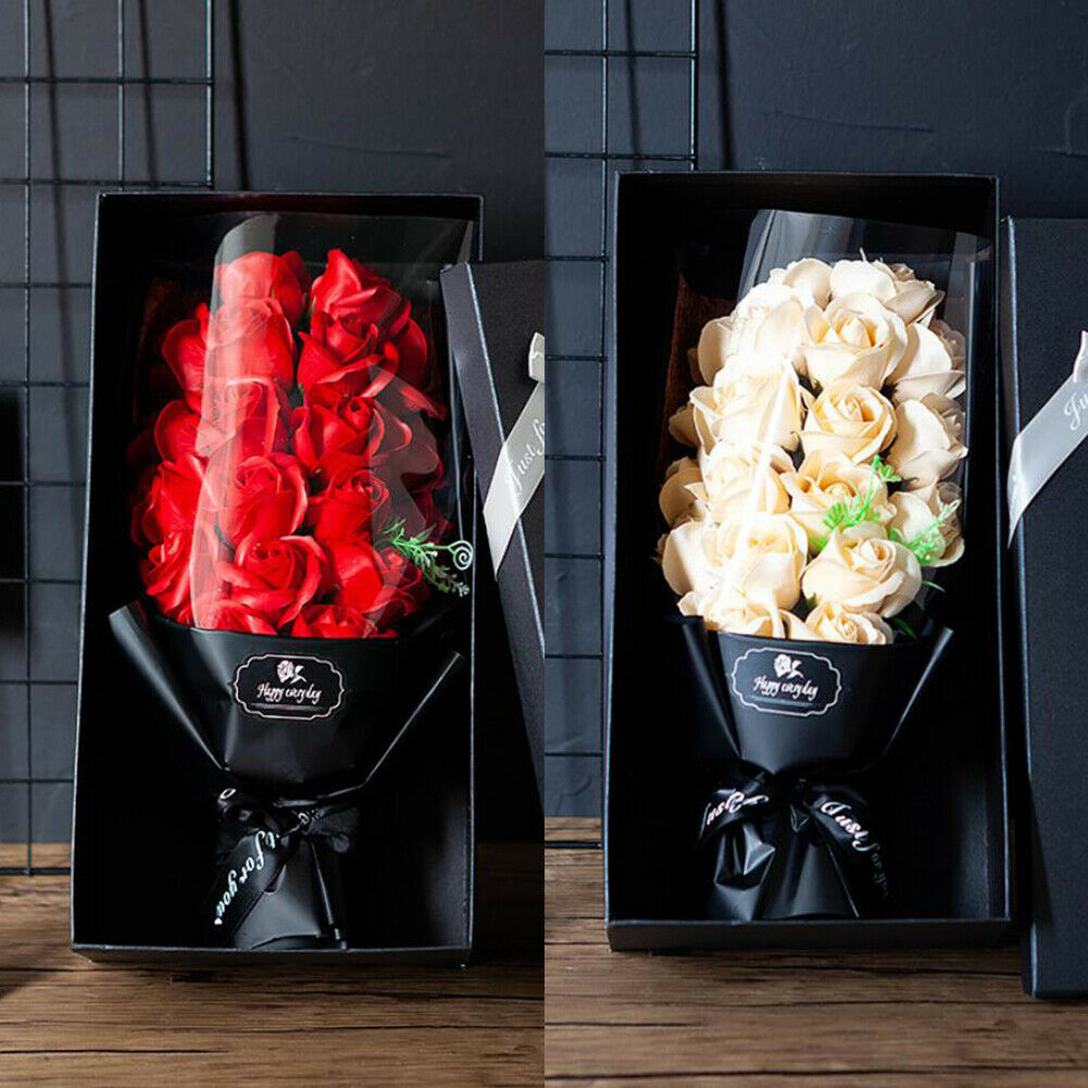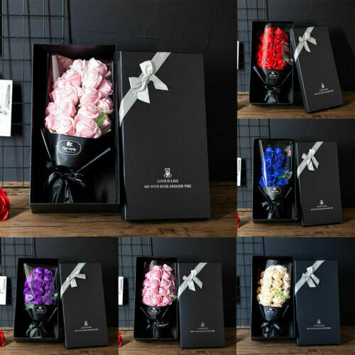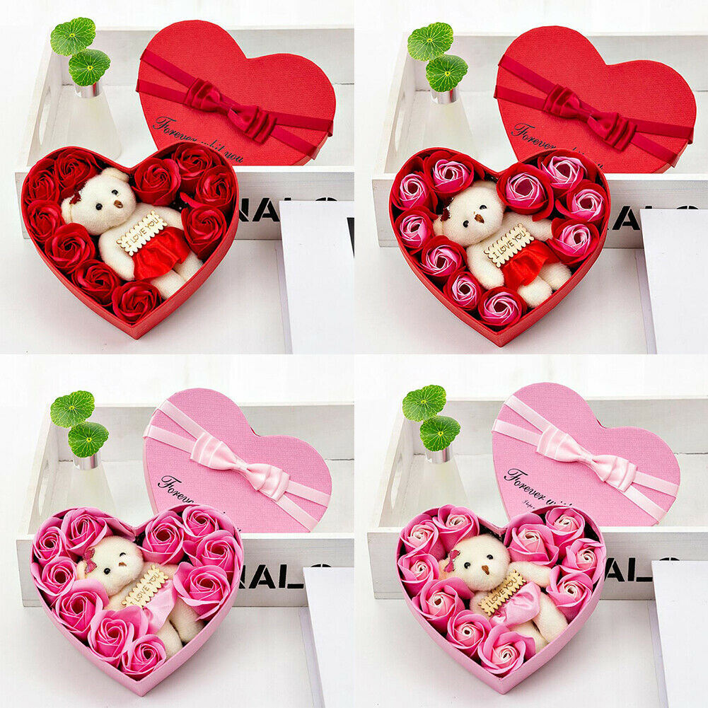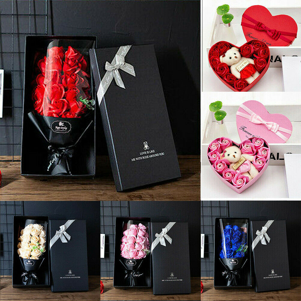 6 Colors Artificial Soap Rose Flower Bouquet Bear Wedding Valentine's Day Gift