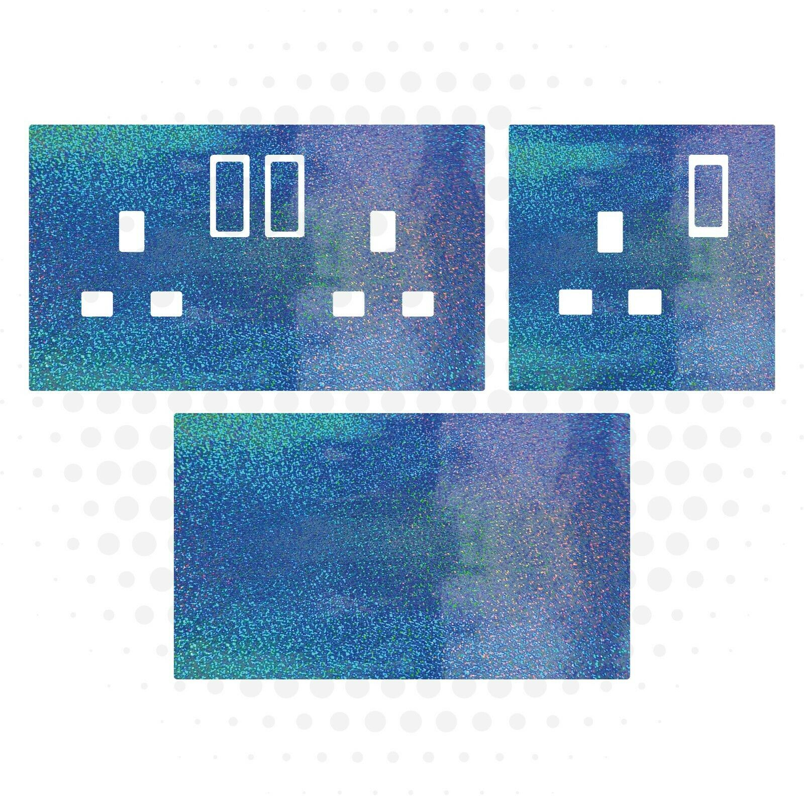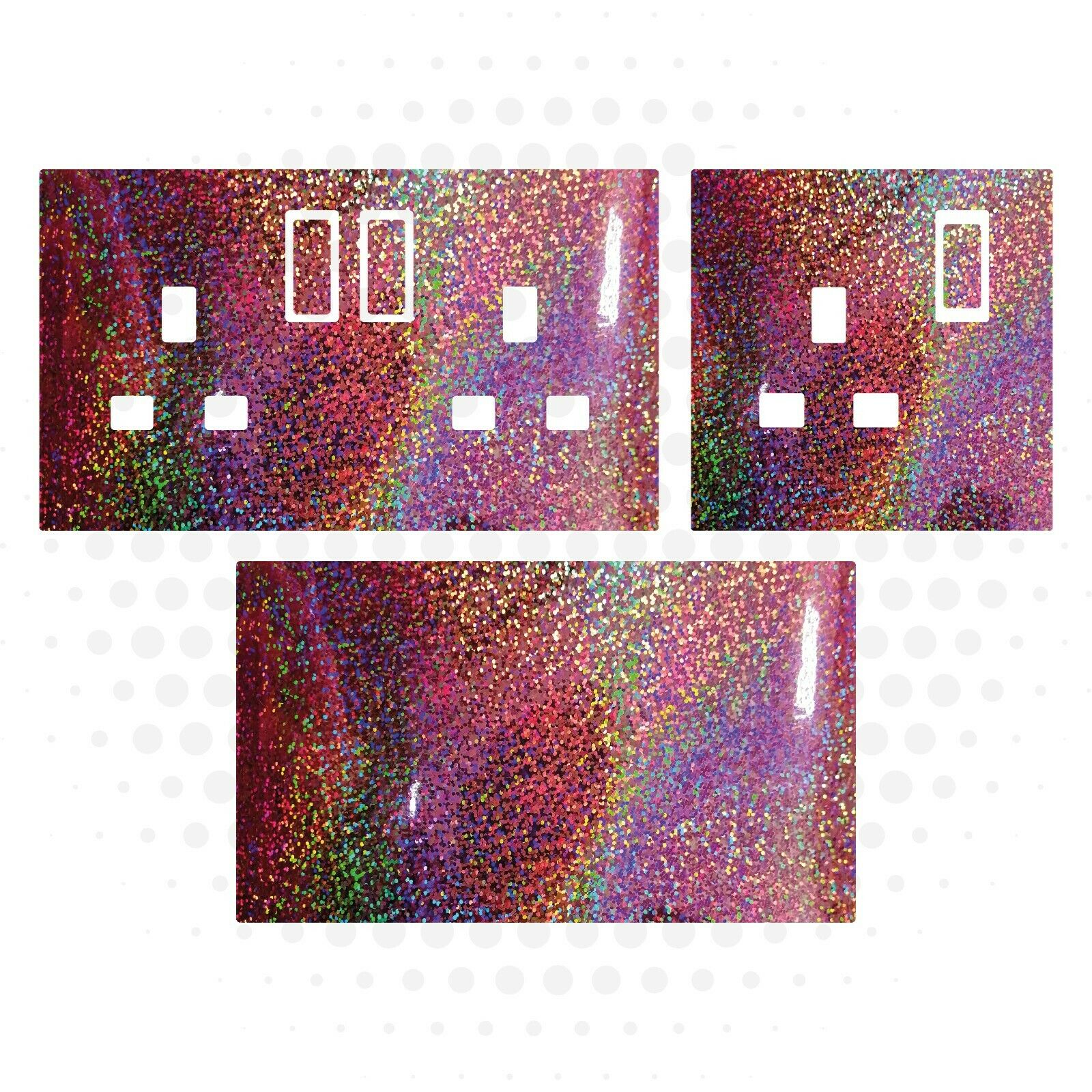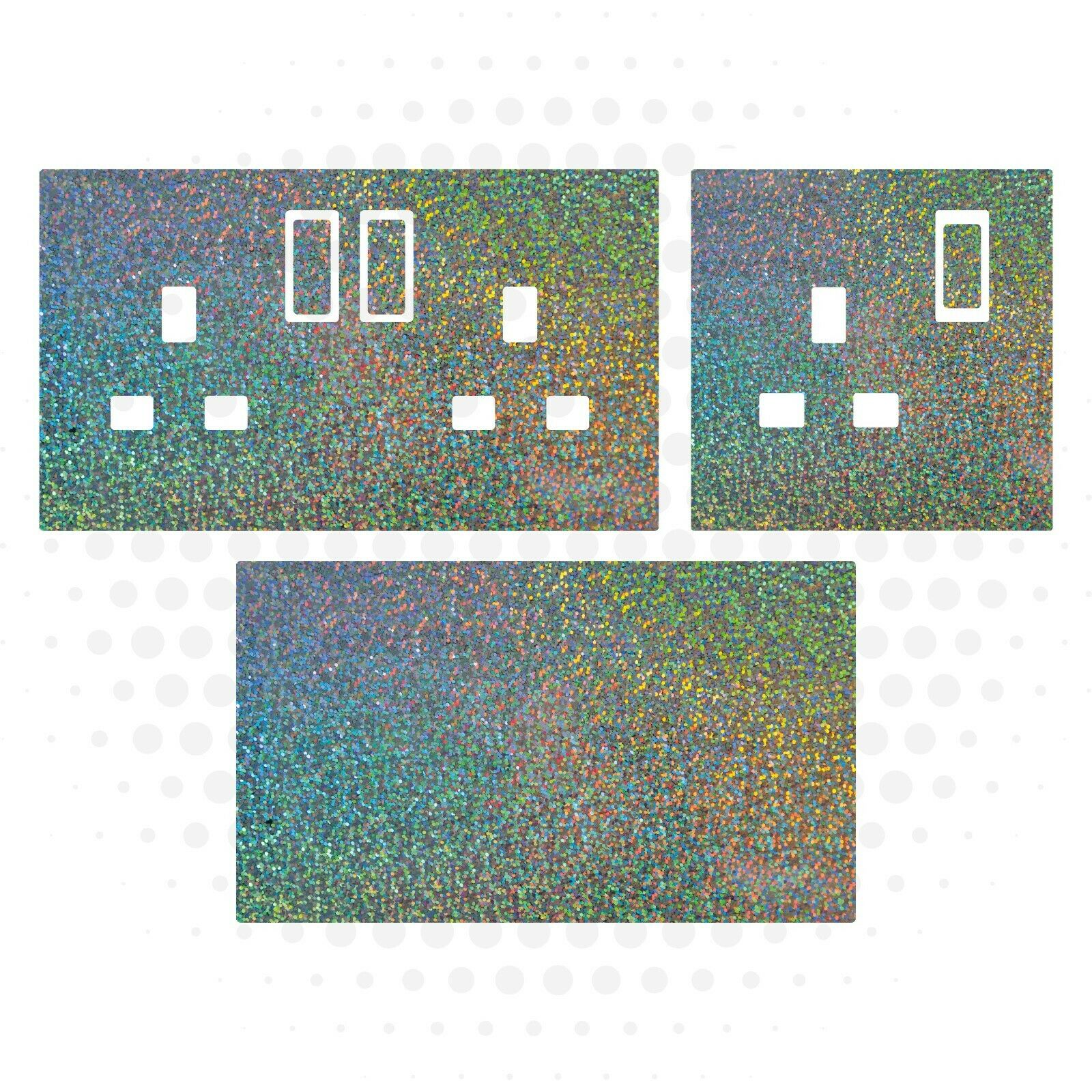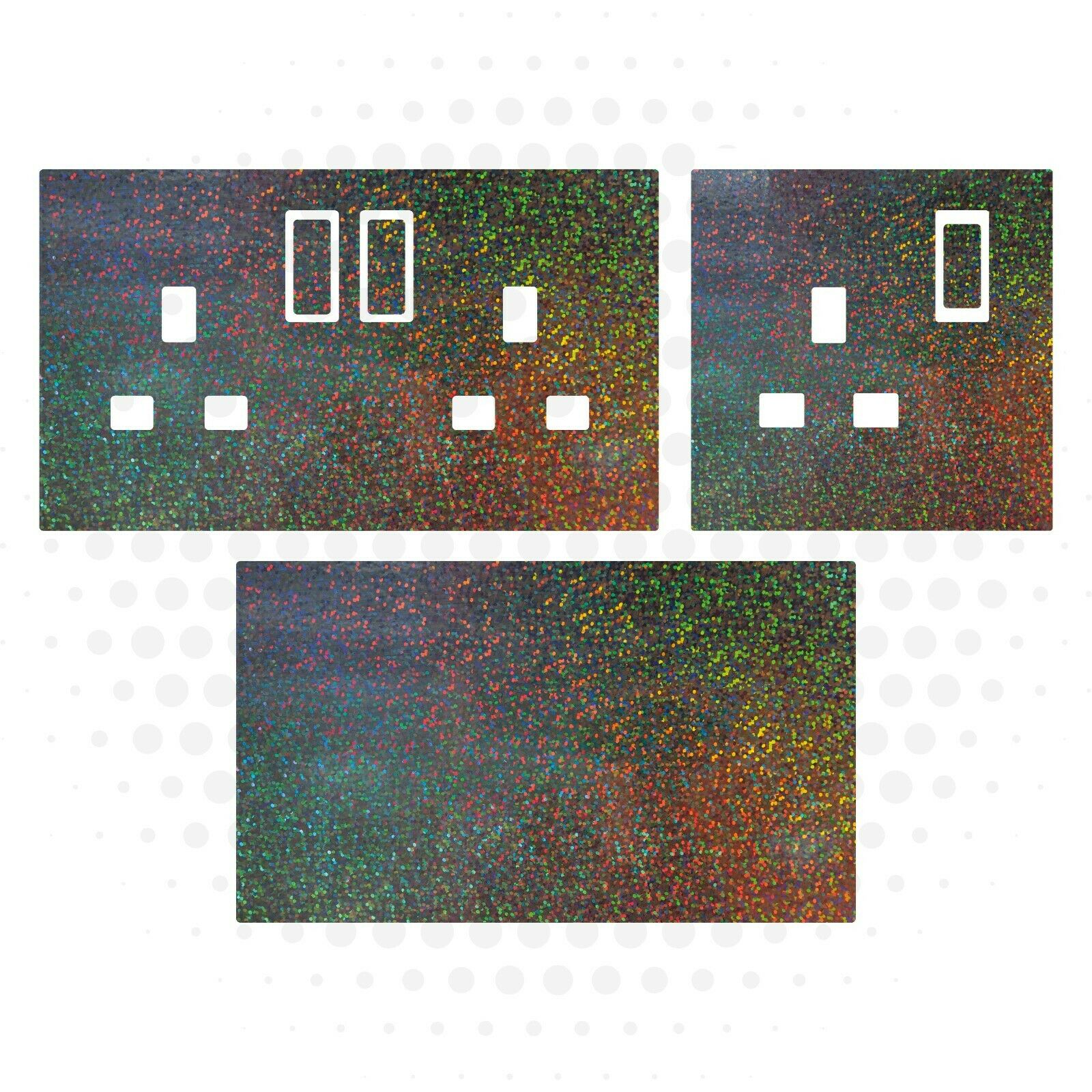 Glitter Effect UK Plug Socket Stickers Kids Bedroom Living Room / Black / Silver