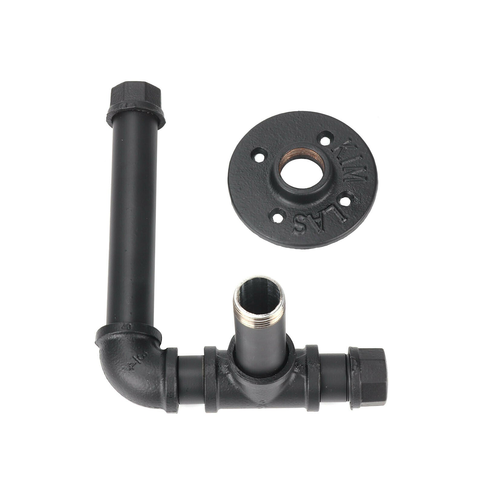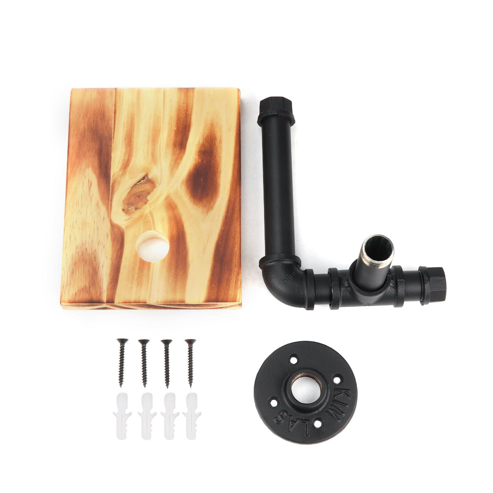 Modern Urban Style Iron Pipe Toilet Paper Holder Roller With Wood Shelf Wall