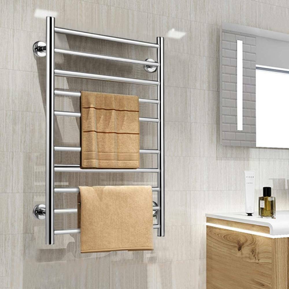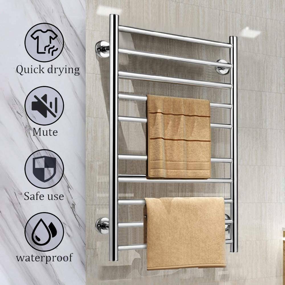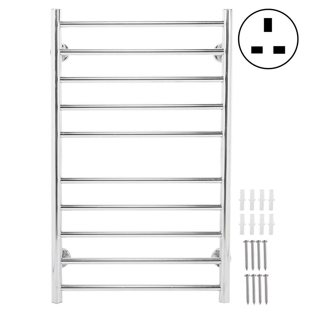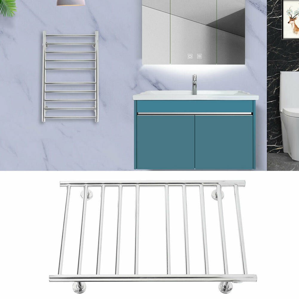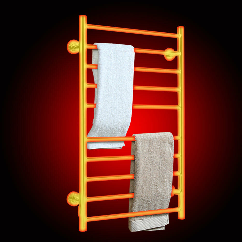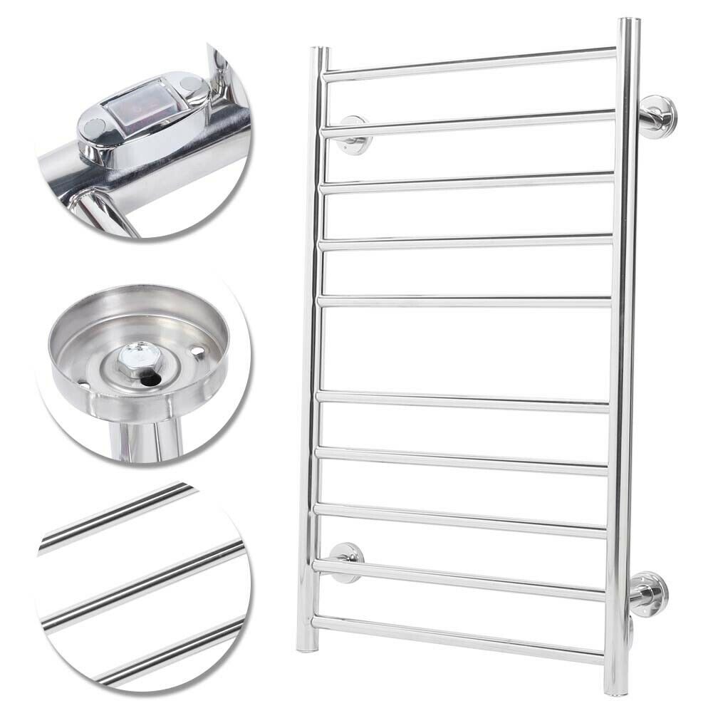 100W Bathroom Wall Electric Ladder Heated 10 Bars Towel Rail Warmer Radiator
