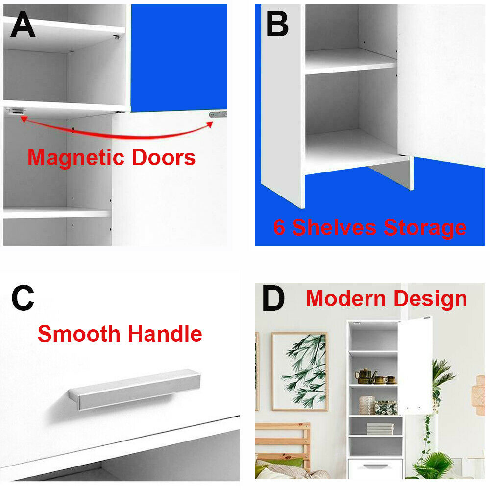 185CM Freestanding Bathroom Cabinet Cupboard Tallboy 2 Door with Storage Shelves