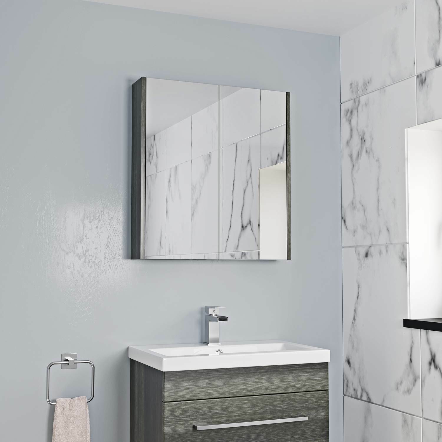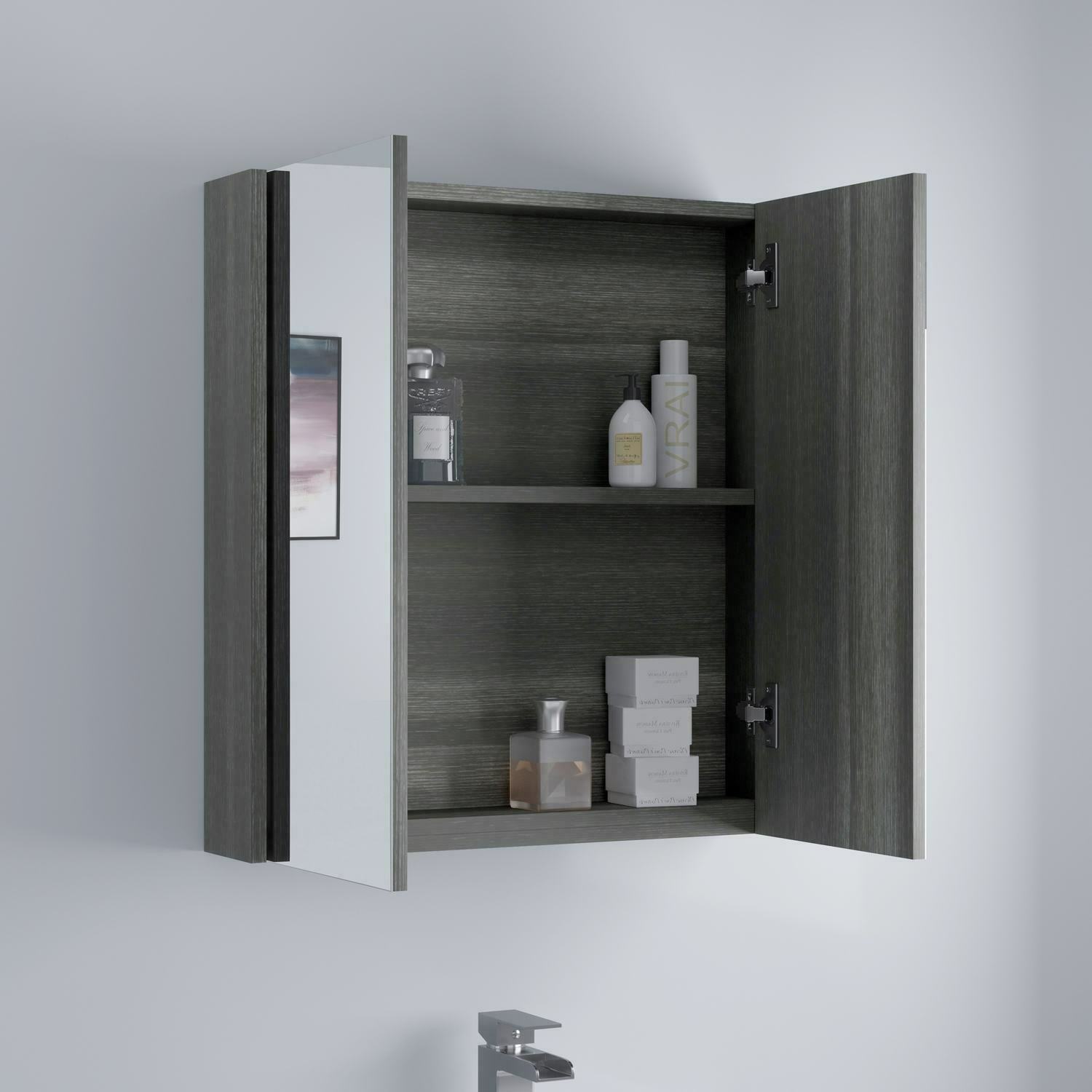 600mm Bathroom Mirror Cabinet 2 Door Storage Cupboard Wall Mounted Charcoal Grey