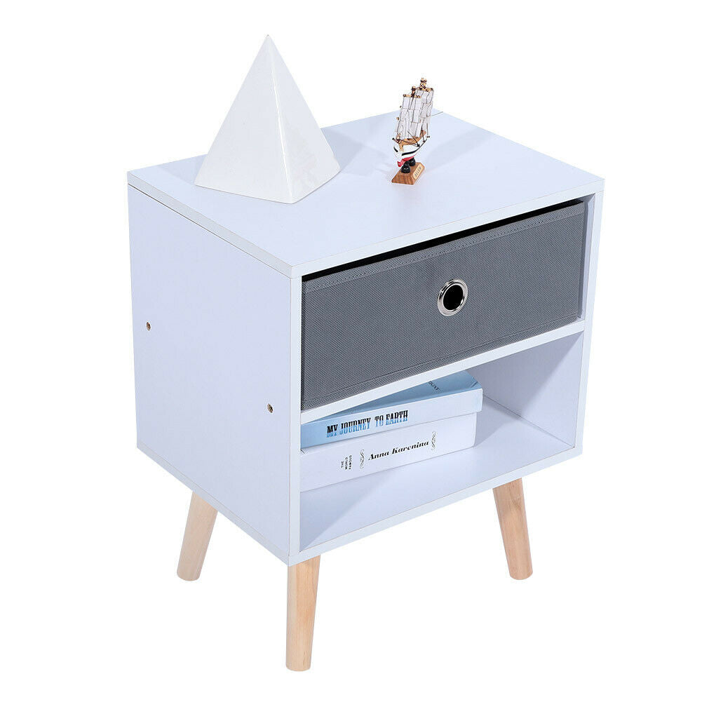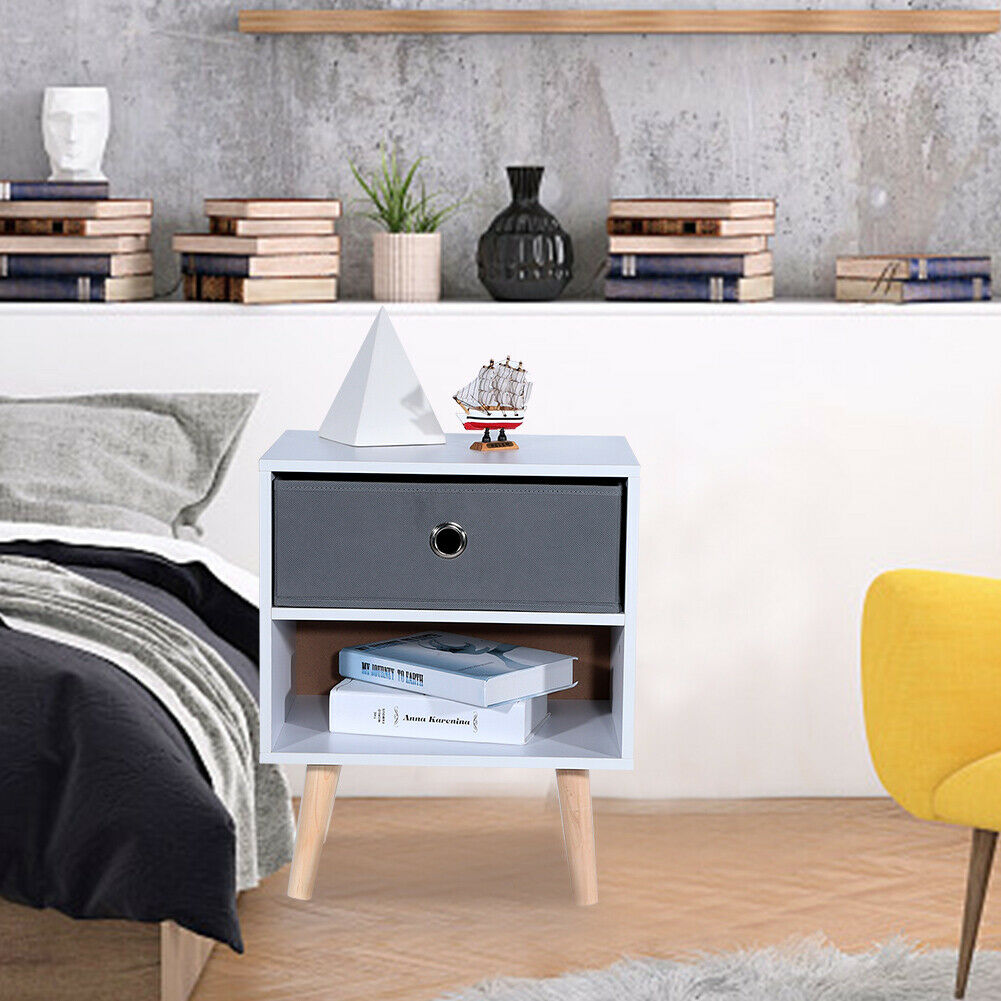 Bedside Rack with Shelf Drawer Nightstand White Grey Cabinet Side Table Storage