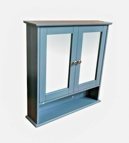 Grey Double Door Mirror With Shelf Bathroom Cabinet