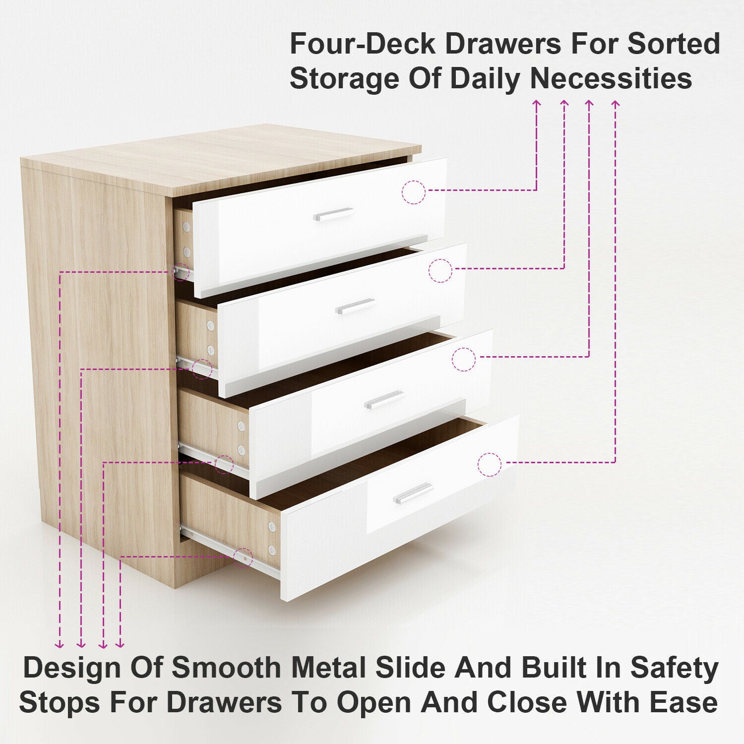 Home High Gloss Chest Of 4 Drawers Bedroom Furniture White&Oak Storage Cabinet