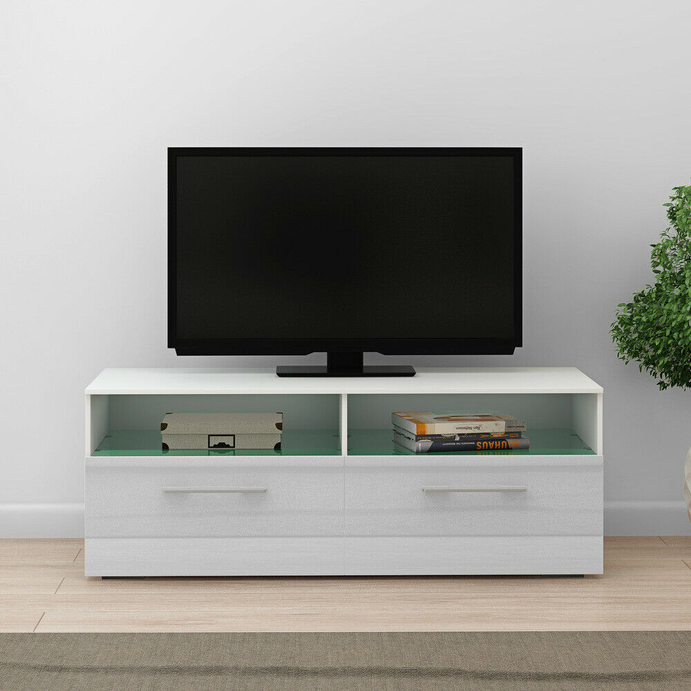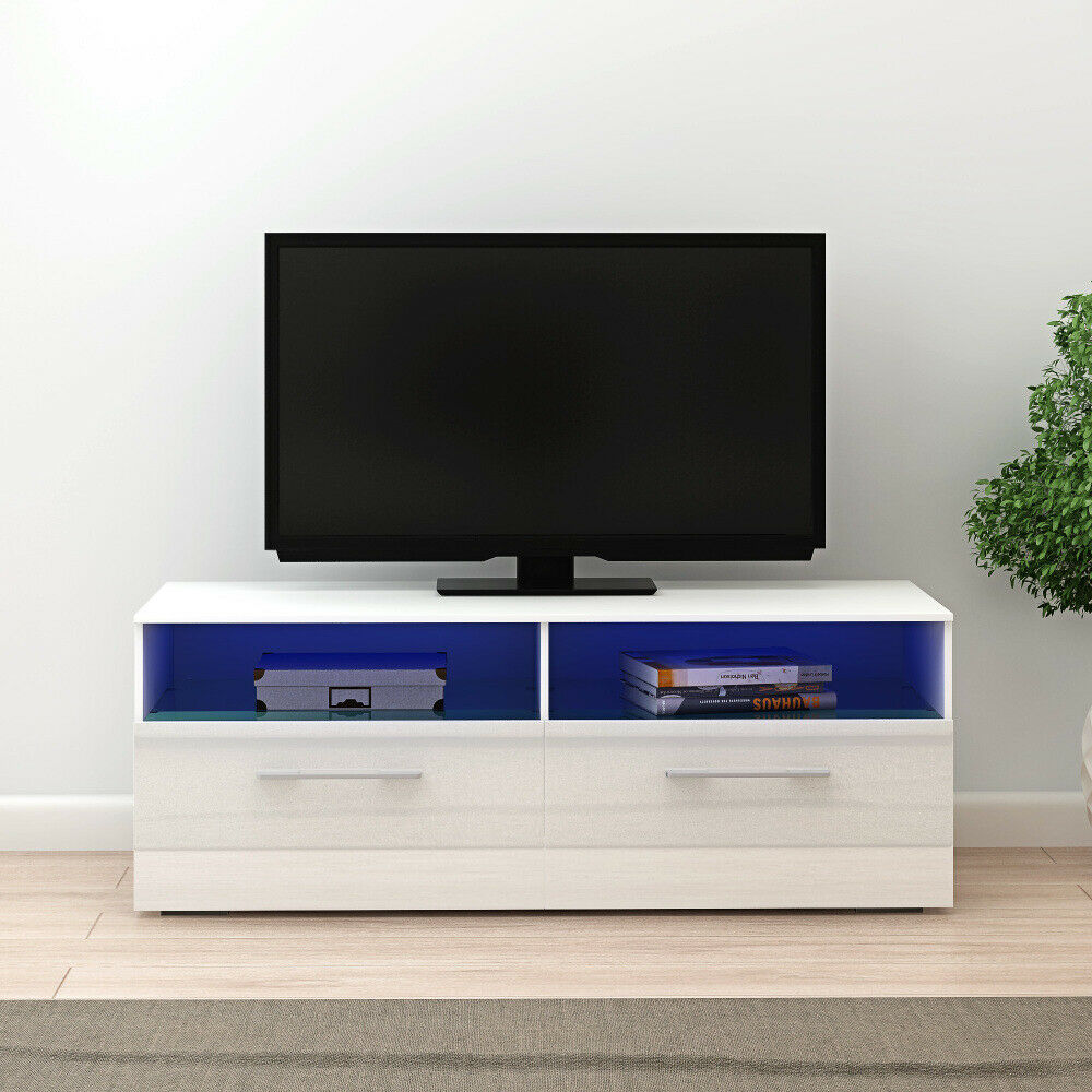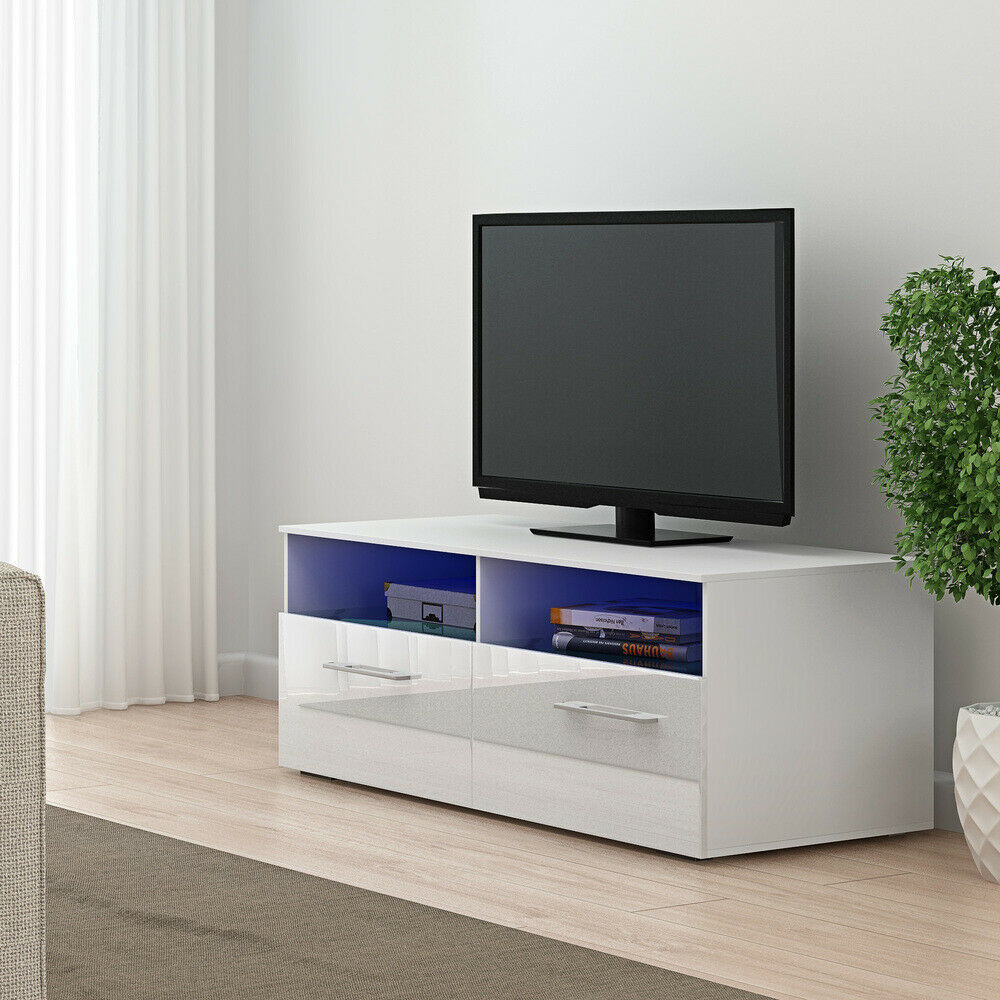 Modern 100cm TV Cabinet Unit Stand White High Gloss Door & Matt Body LED Lights