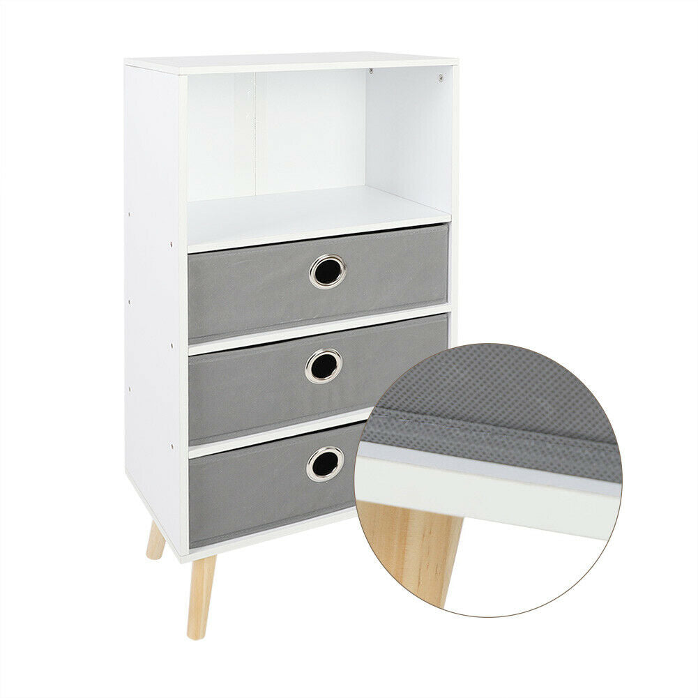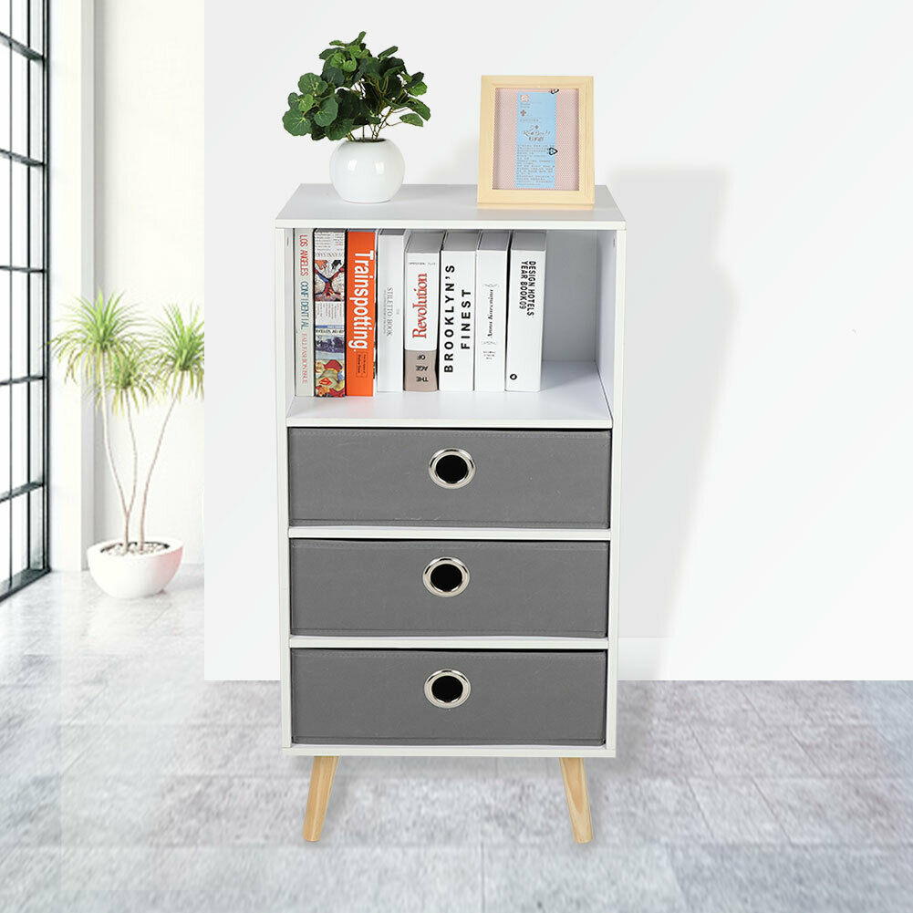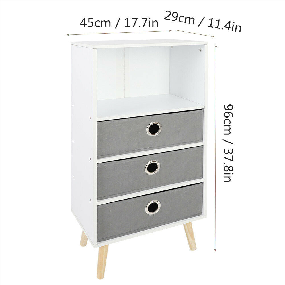 Modern Bookshelf Shelving Display Storage Cabinet Bookcase with 3 Fabric Drawers
