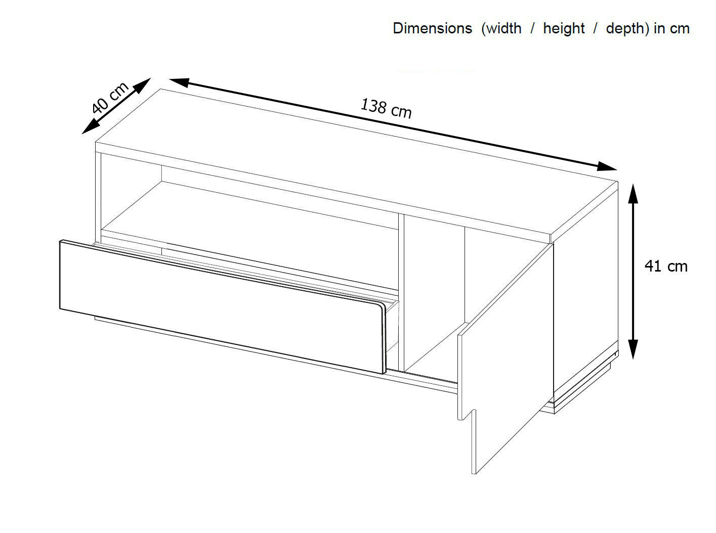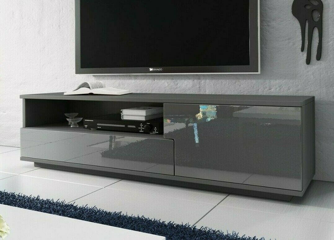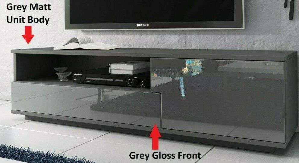 Modern GREY GLOSS FRONT TV Cabinet Stand Media Entertainment Unit 138cm