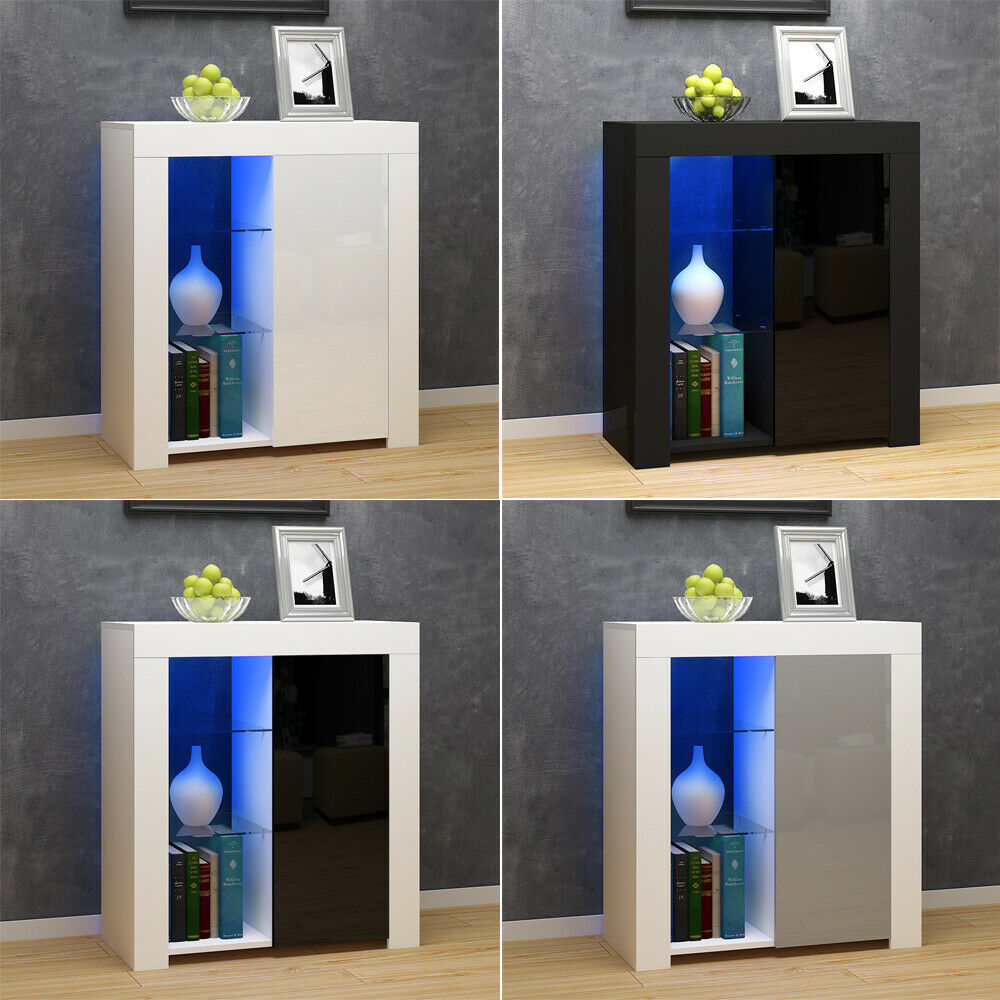 Modern High Gloss Door Matt Sideboard Storage Cupboard Display Cabinet RGB LED