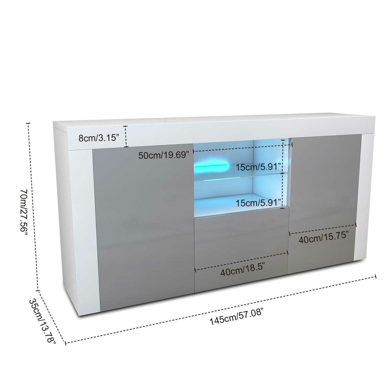 Modern High Gloss Doors TV Unit Cabinet Stand Sideboard Cupboard RGB LED Grey