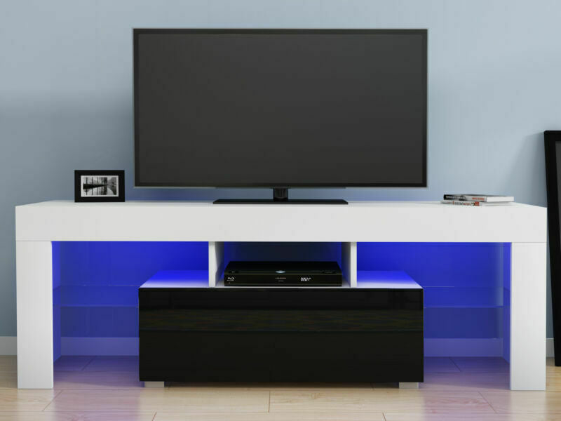 Modern TV Unit Cabinet Stand High Gloss Door and Matt 130cm LED Light Options