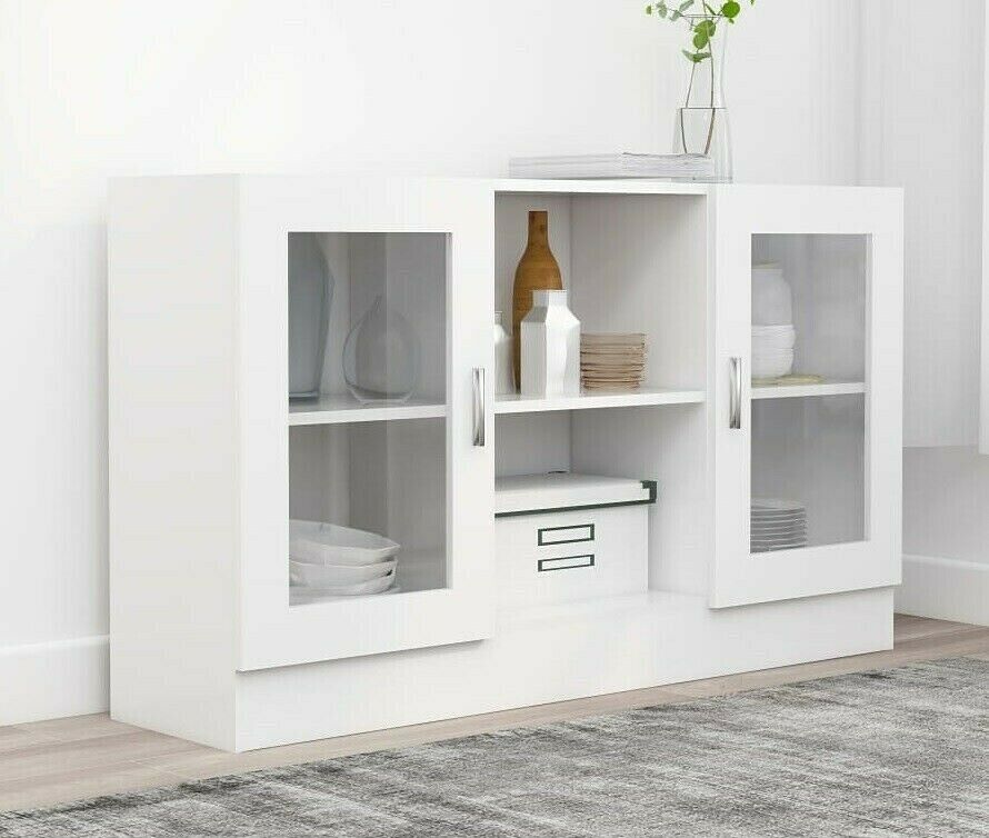 Slim Sideboard White Modern Cupboard Cabinet Unit Storage Narrow Living Room