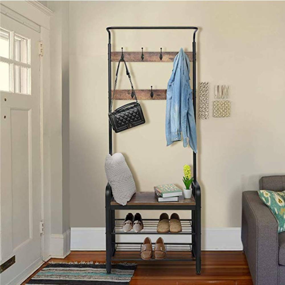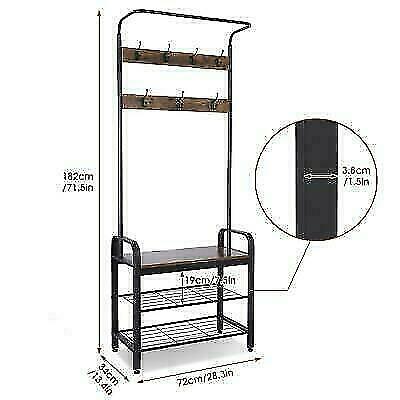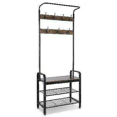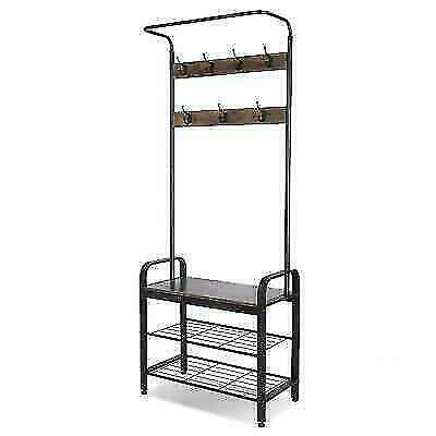 Vintage Metal 7 Hooks Hat and Coat Stand Clothes Shoe Rack Hanger Hooks Shelf