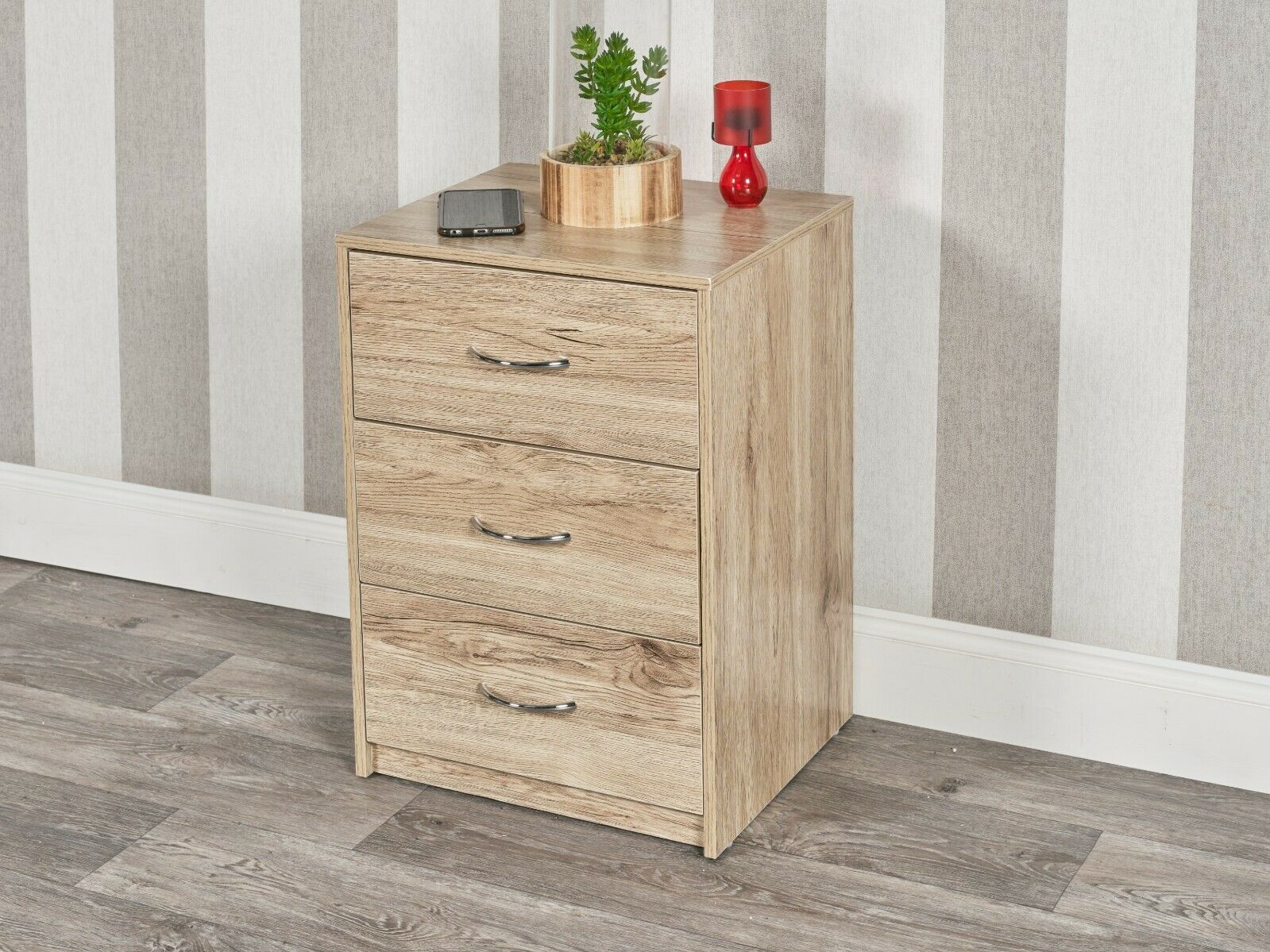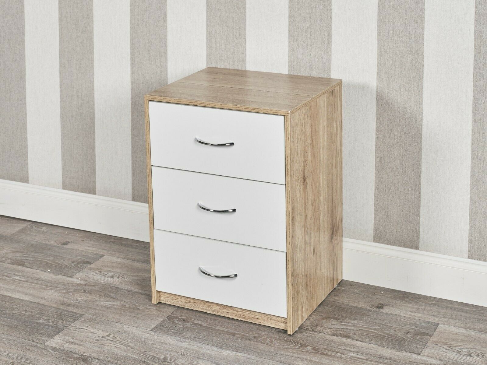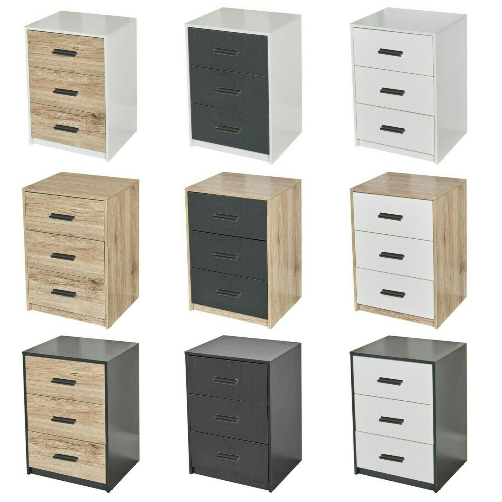 3 Drawer Wooden Bedroom Bedside Cabinet Furniture Storage Nightstand Side Table