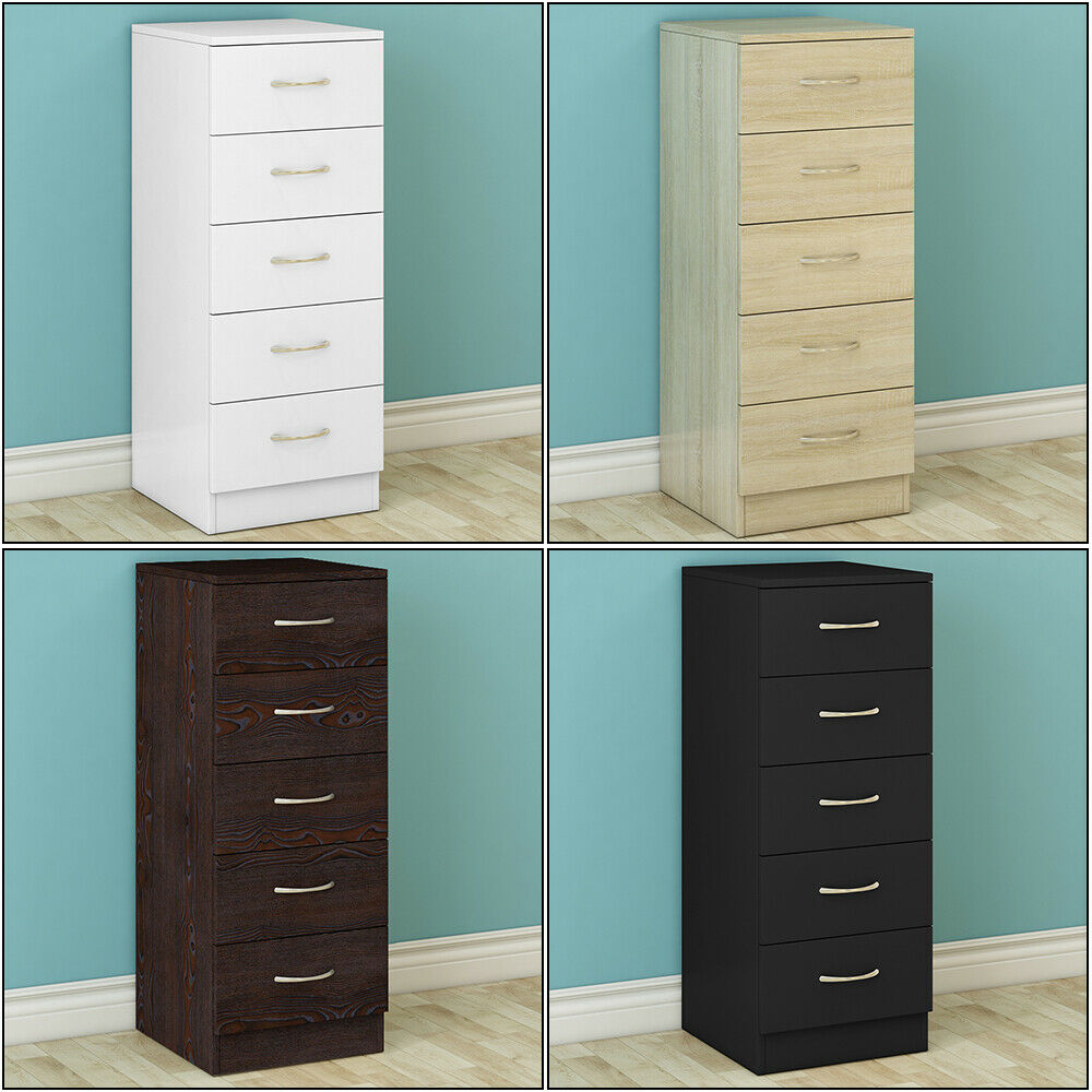 5 Drawers Chest of Drawers Narrow Tall Cabinet Bedroom Hallway Storage Furniture