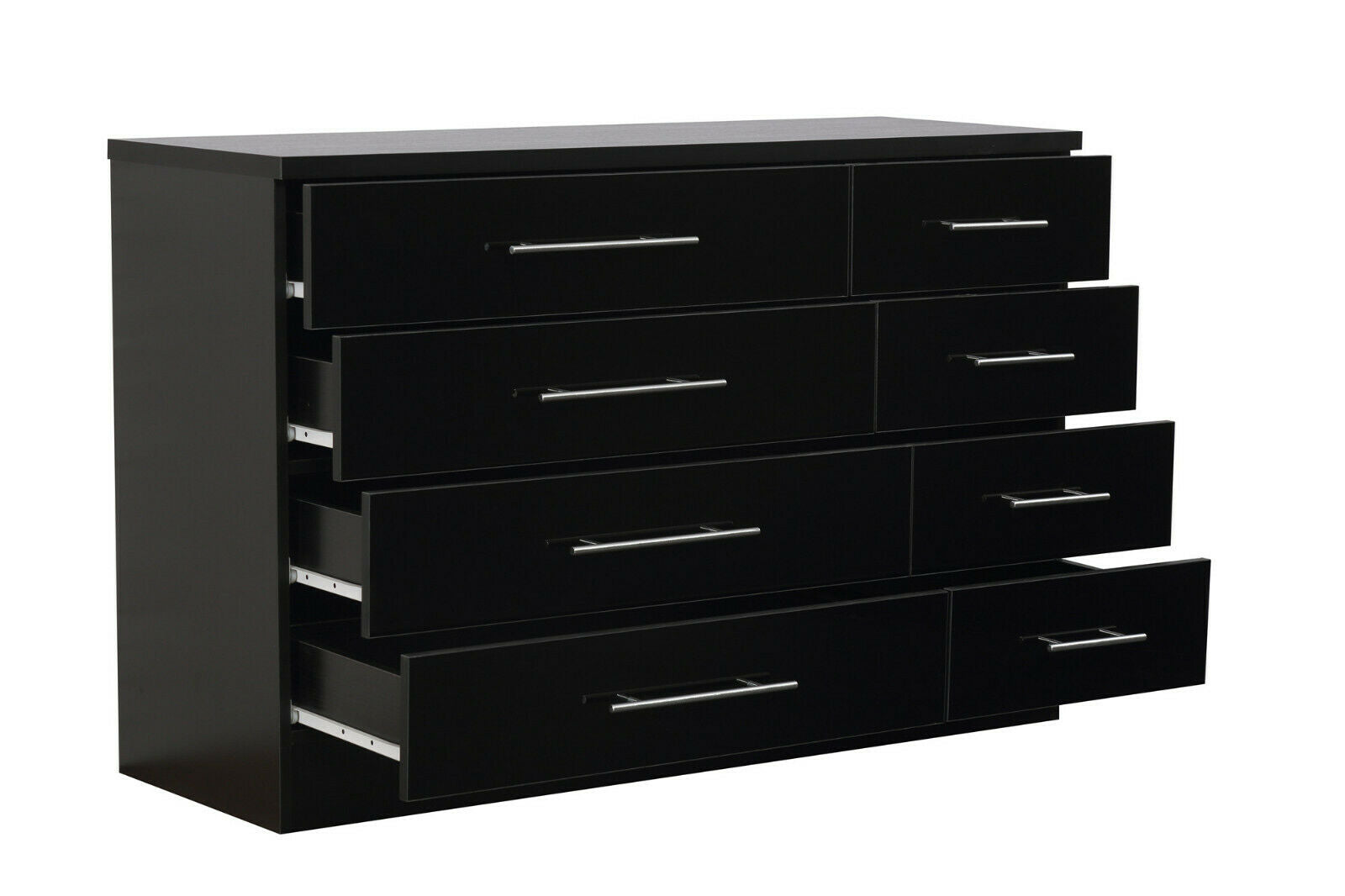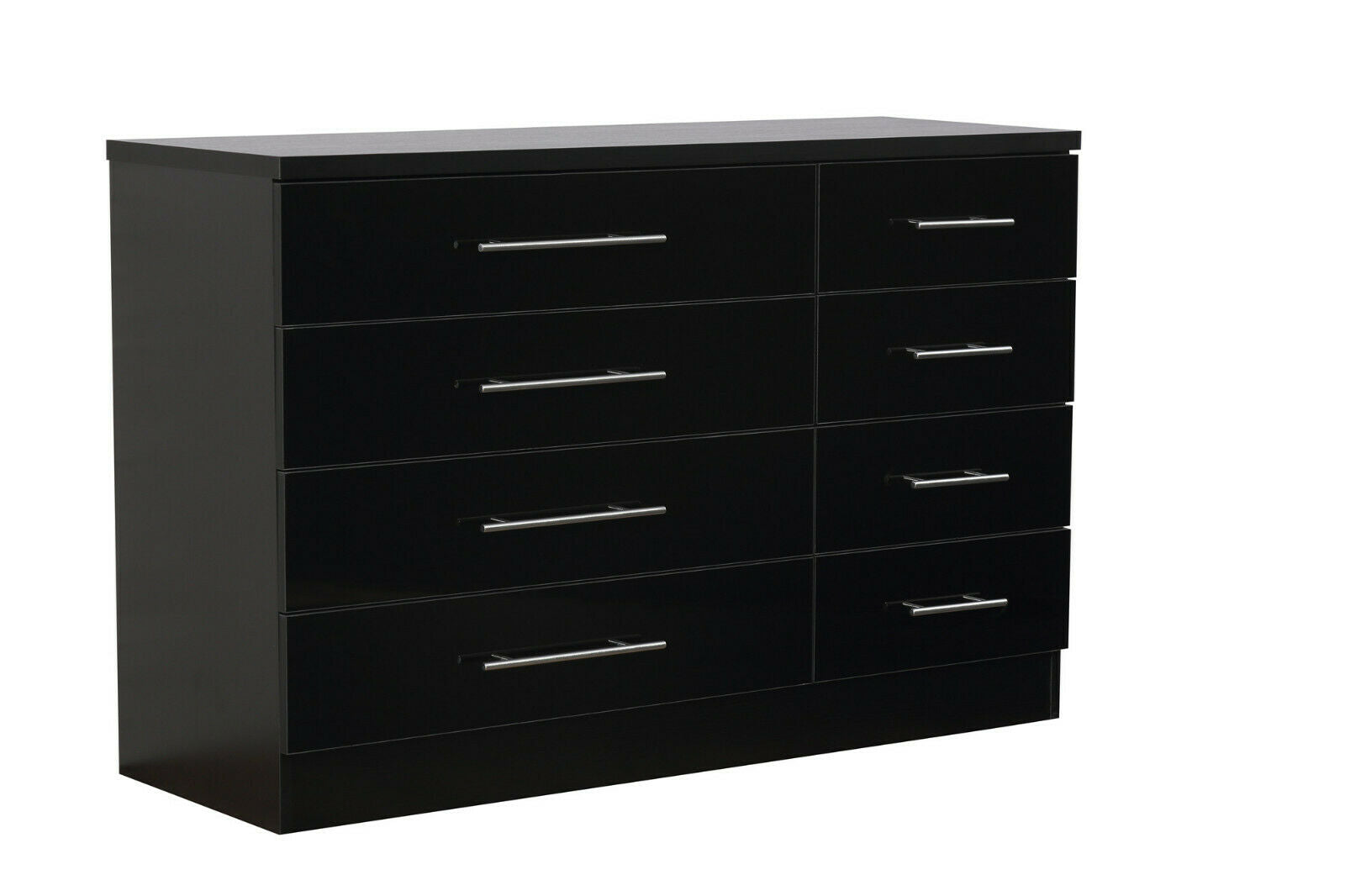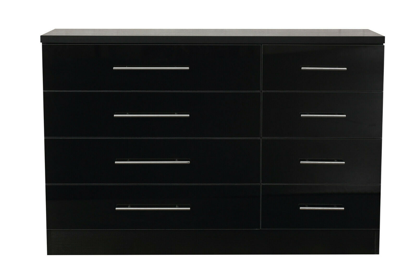 Black High Gloss 8 Drawer Sideboard / Cupboard / Buffet Solo / Chest of Drawers