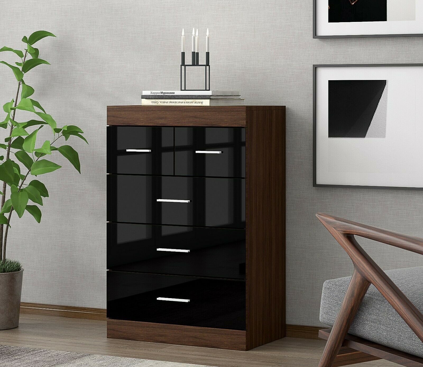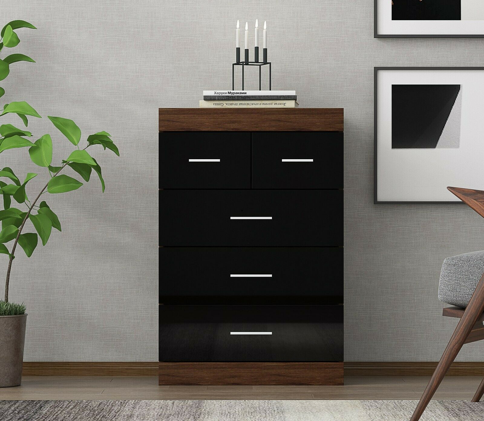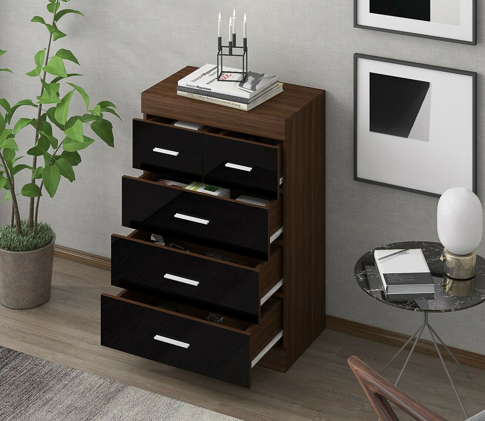Chest of 3+2 Drawers Bedroom Cabinet Storage Sideboard Drawer Black Walnut New