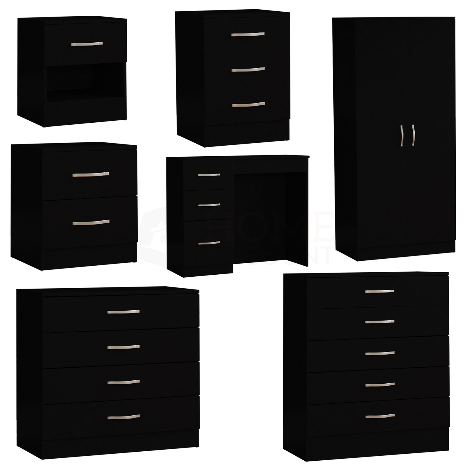 Chest Of Drawers Bedside Cabinet Dressing Table Wardrobe Bedroom Black