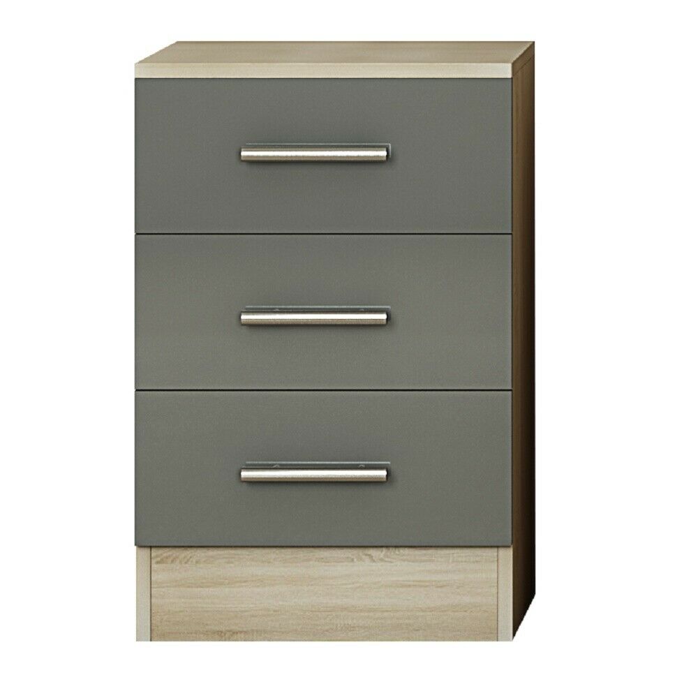 Modern Bedroom Living - Grey Gloss/ Sonoma Oak 3 Drawer Bedside Furniture