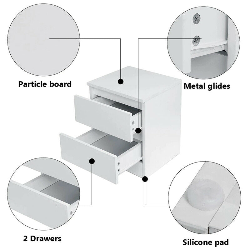 Modern Bedside Table Cabinet 2/3/4 Chest of Drawers Storage Nightstand Bedroom