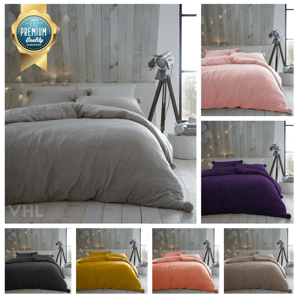 Premium Teddy Bear Fleece Pom Pom Duvet Cover Ultra Soft Warm Cosy Bedding Set