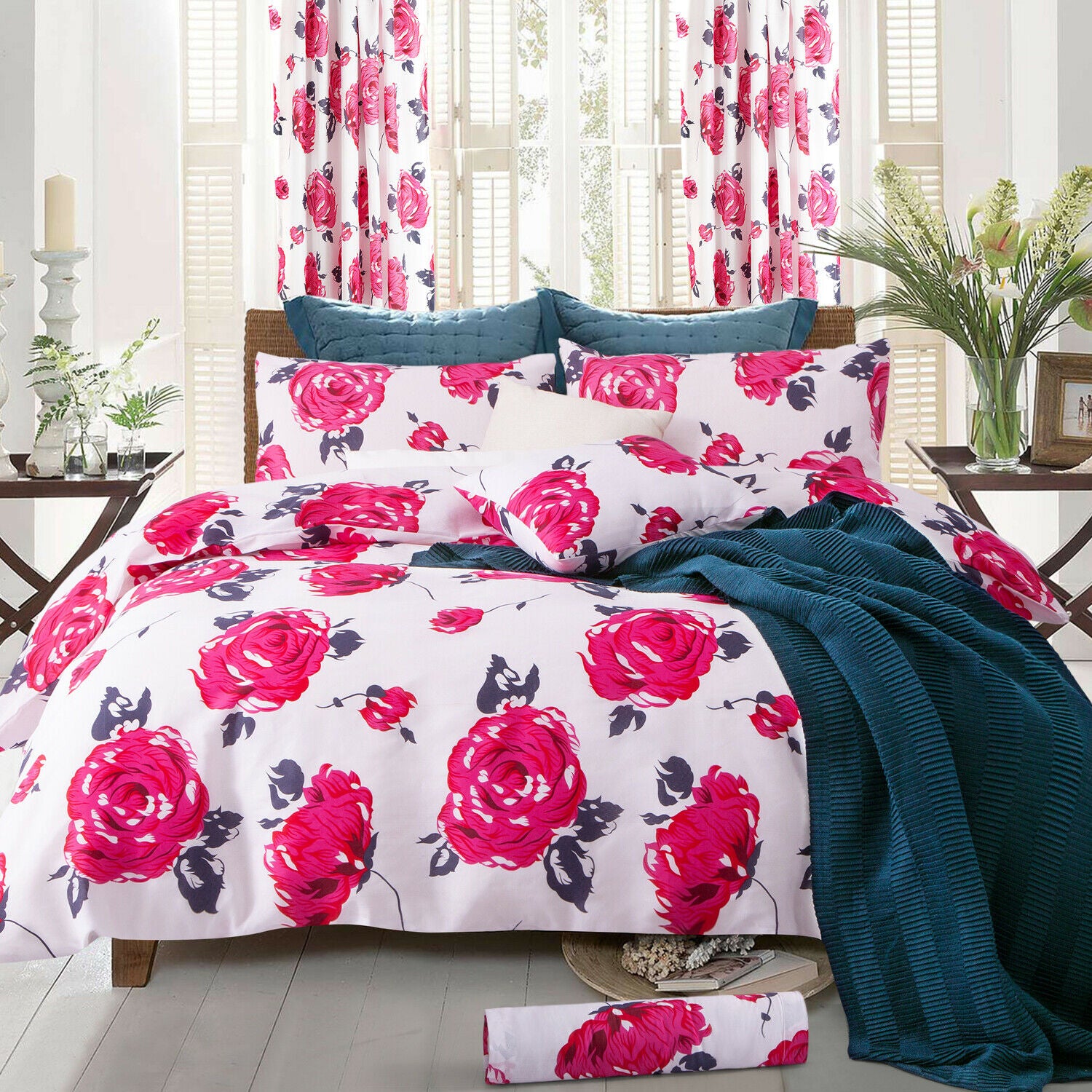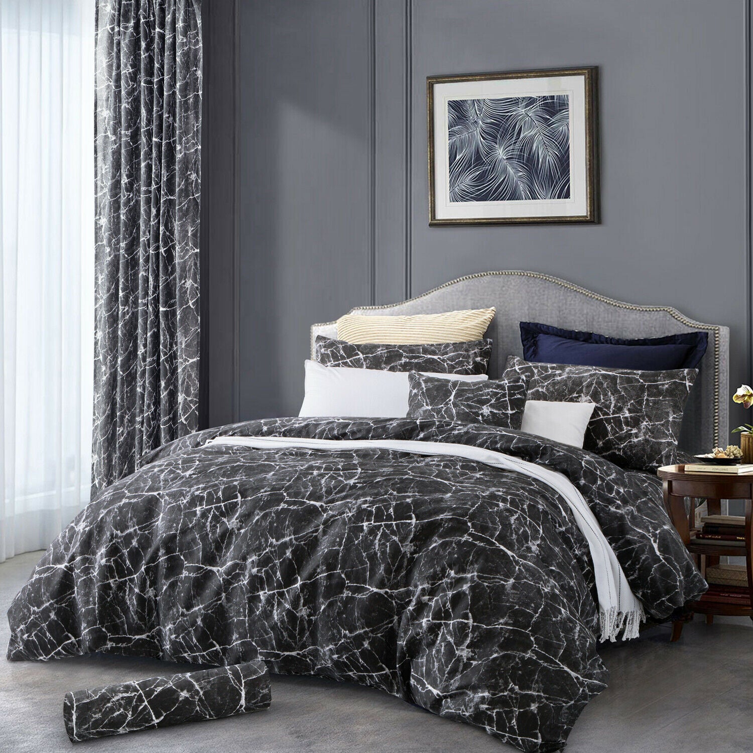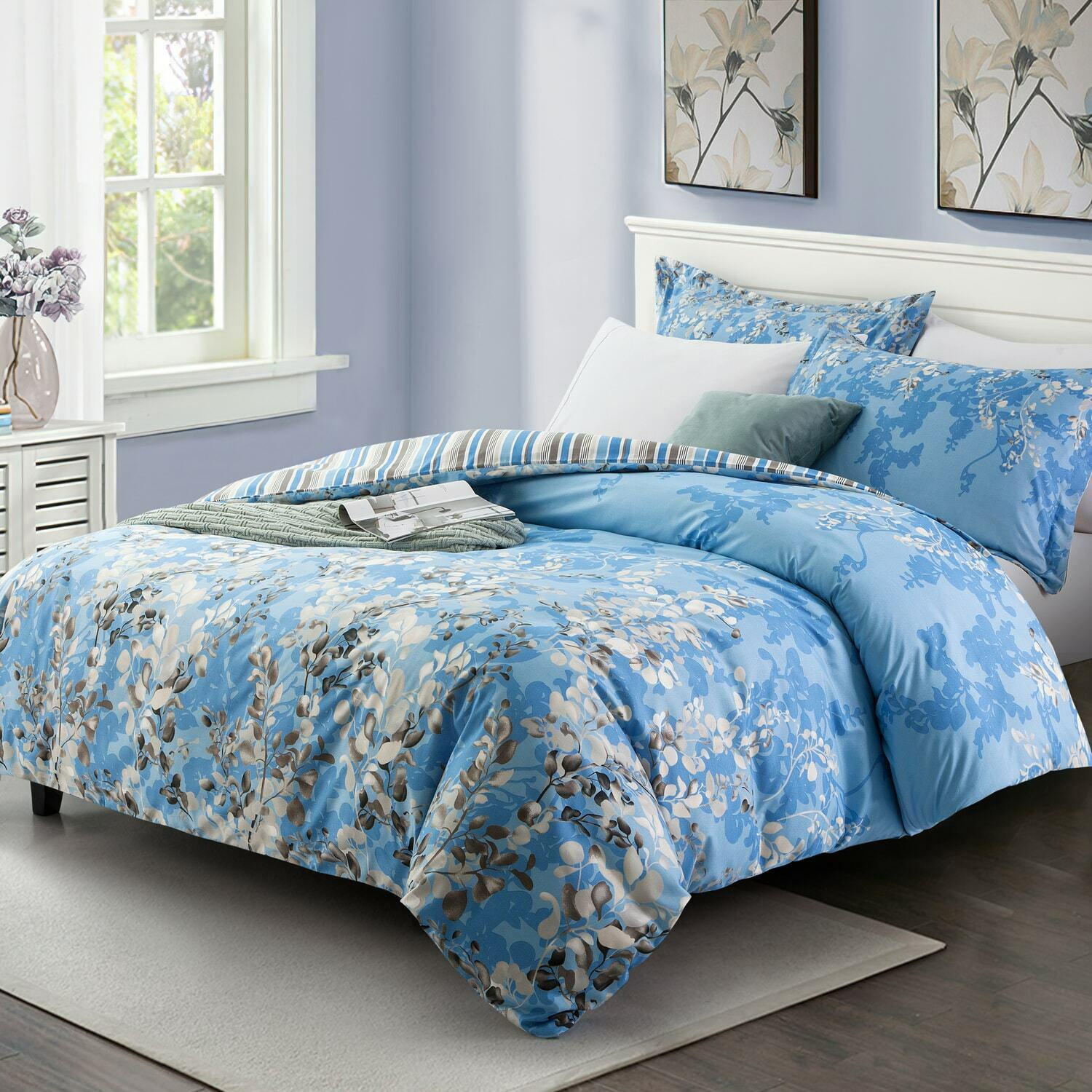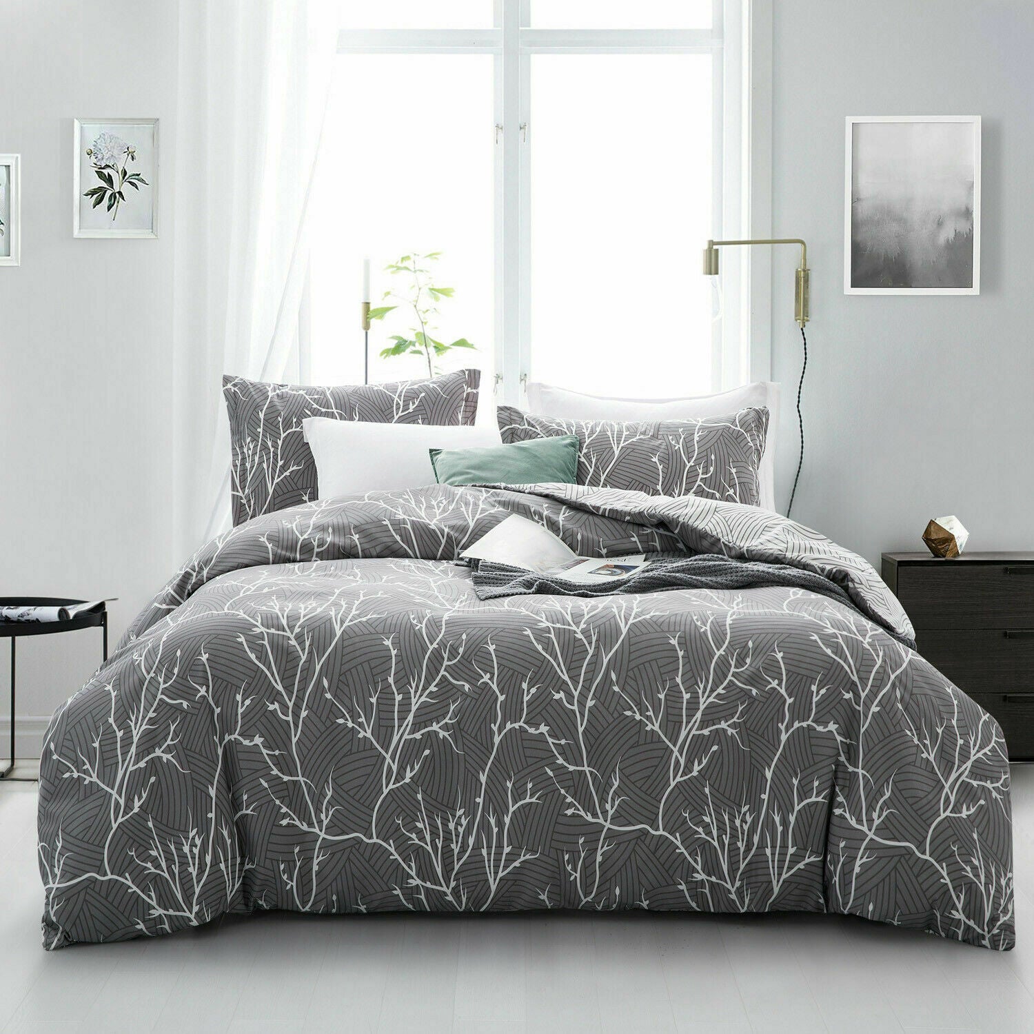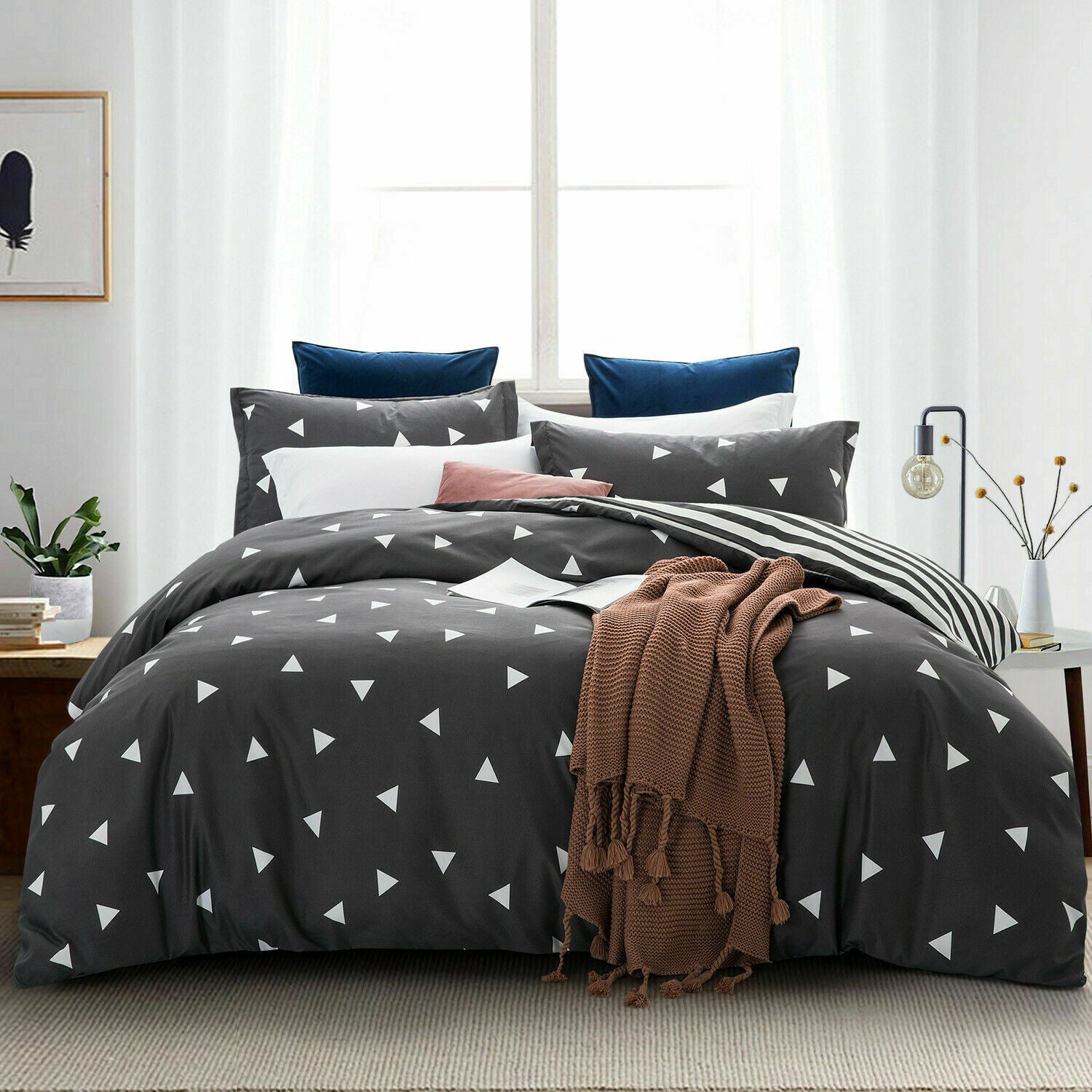 Reversible Duvet Quilt Cover Bedding Set Single Double King Size + Pillow Cases