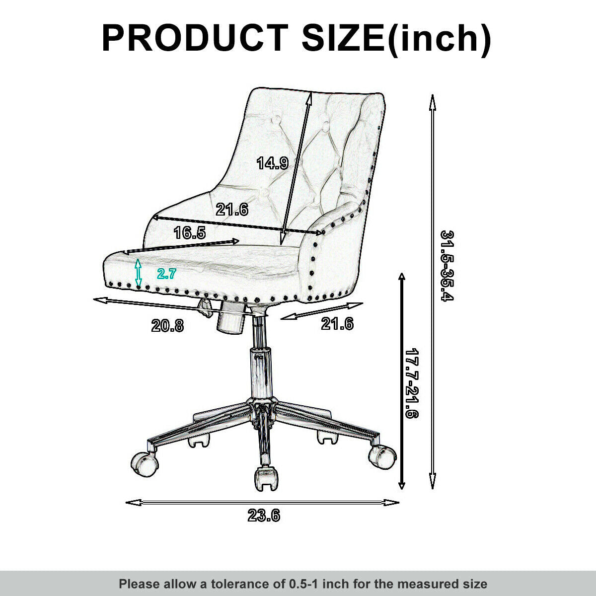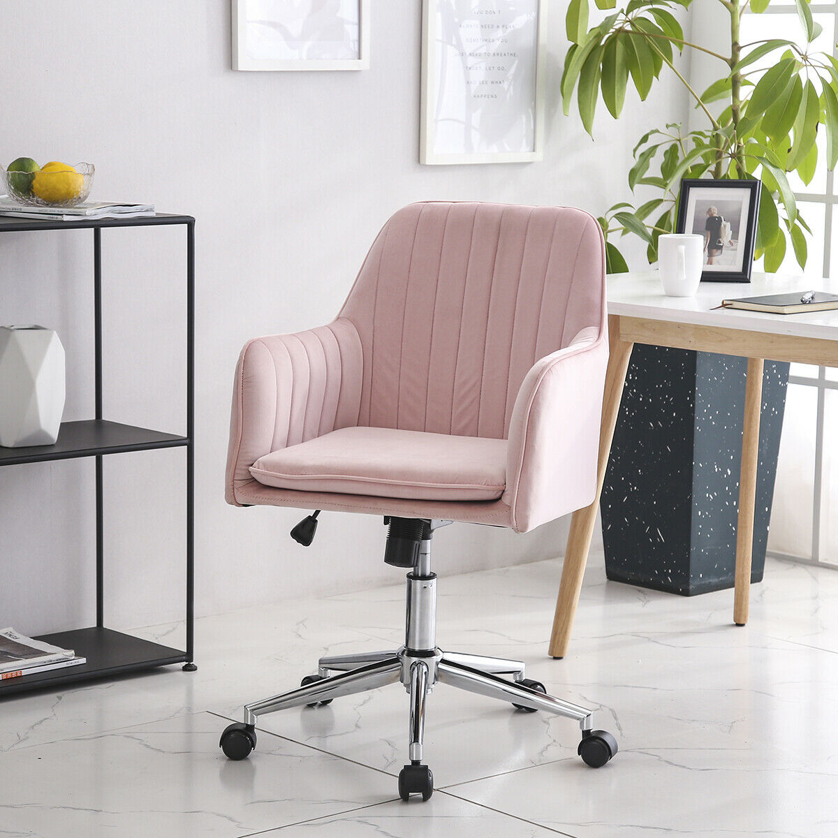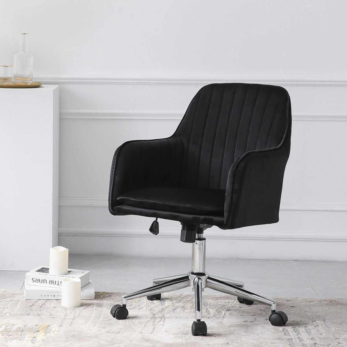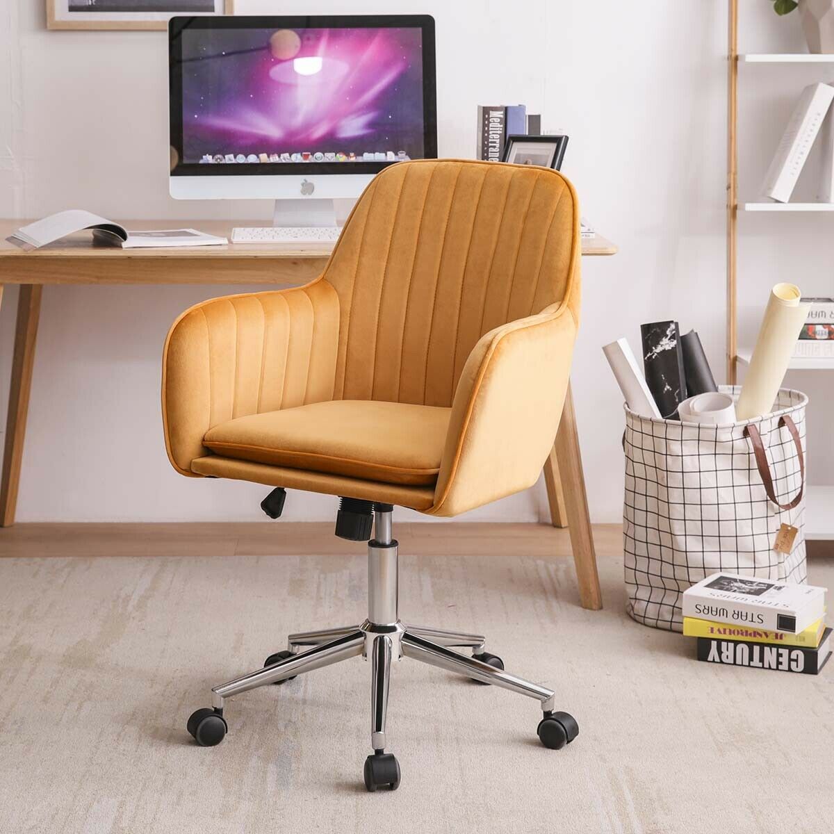 Office Chair Swivel Velvet Padded Seat Home Computer Desk Armchair Adjustable UK