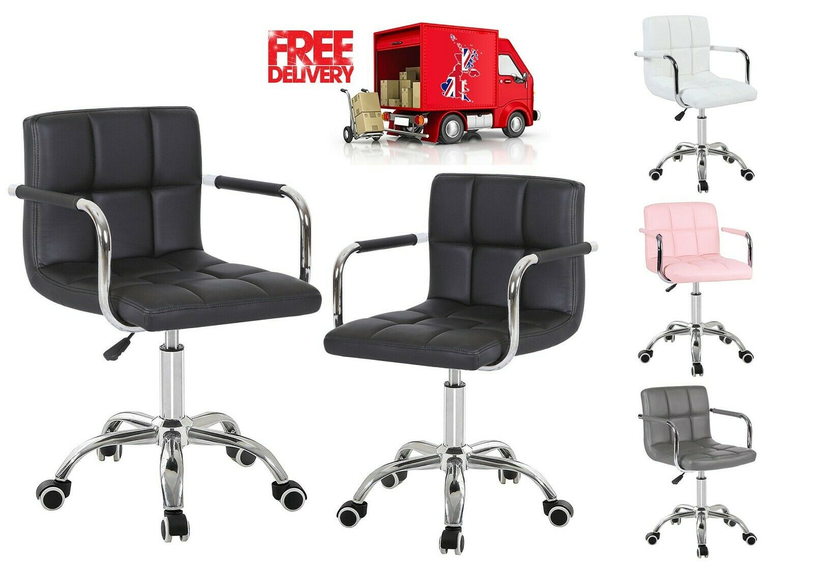 Swivel Office Chair PU Leather Adjustable Computer Desk Armchair(109)- 4 Colors