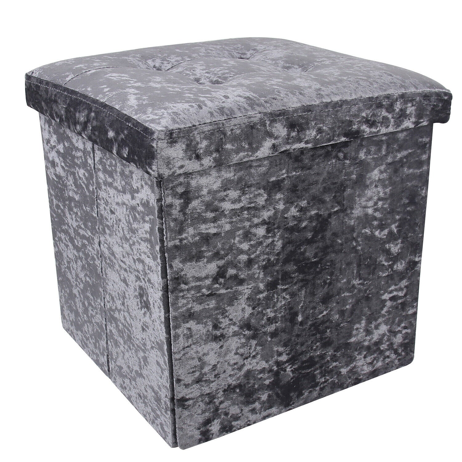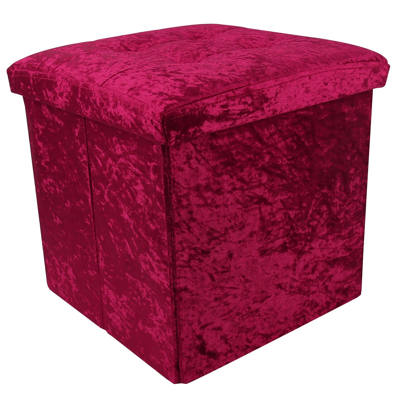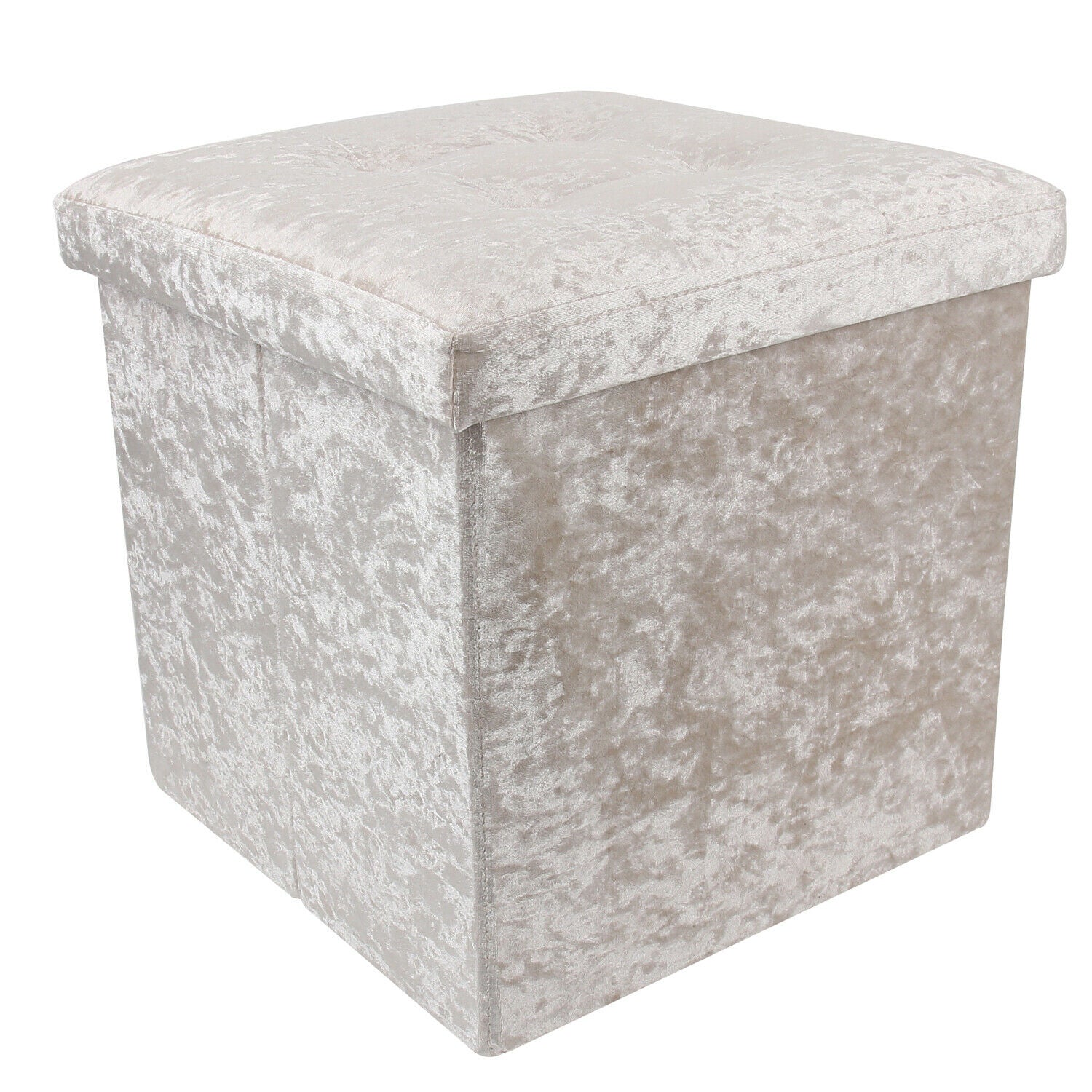 Crushed Velvet Ottoman Foot Stool Storage Box Furniture Seat Rest Cube Foldable