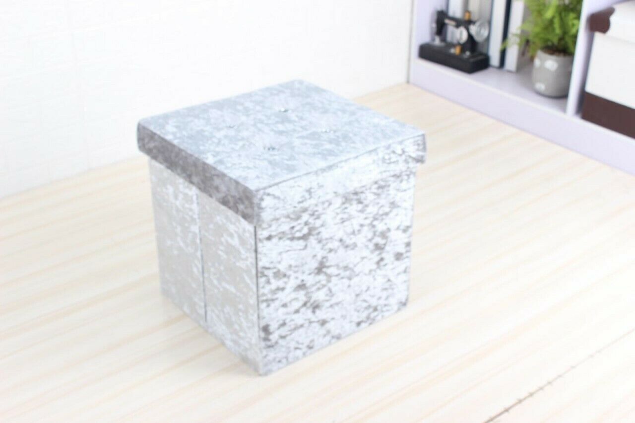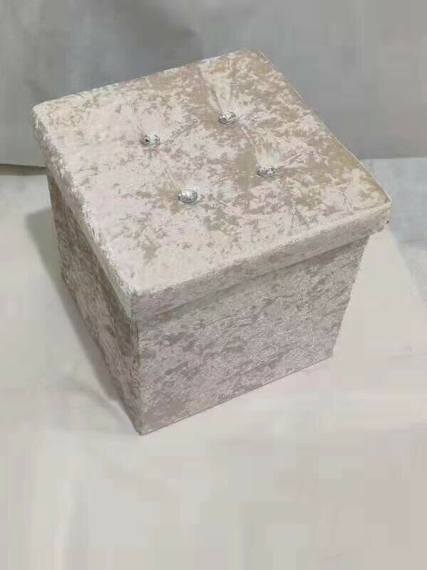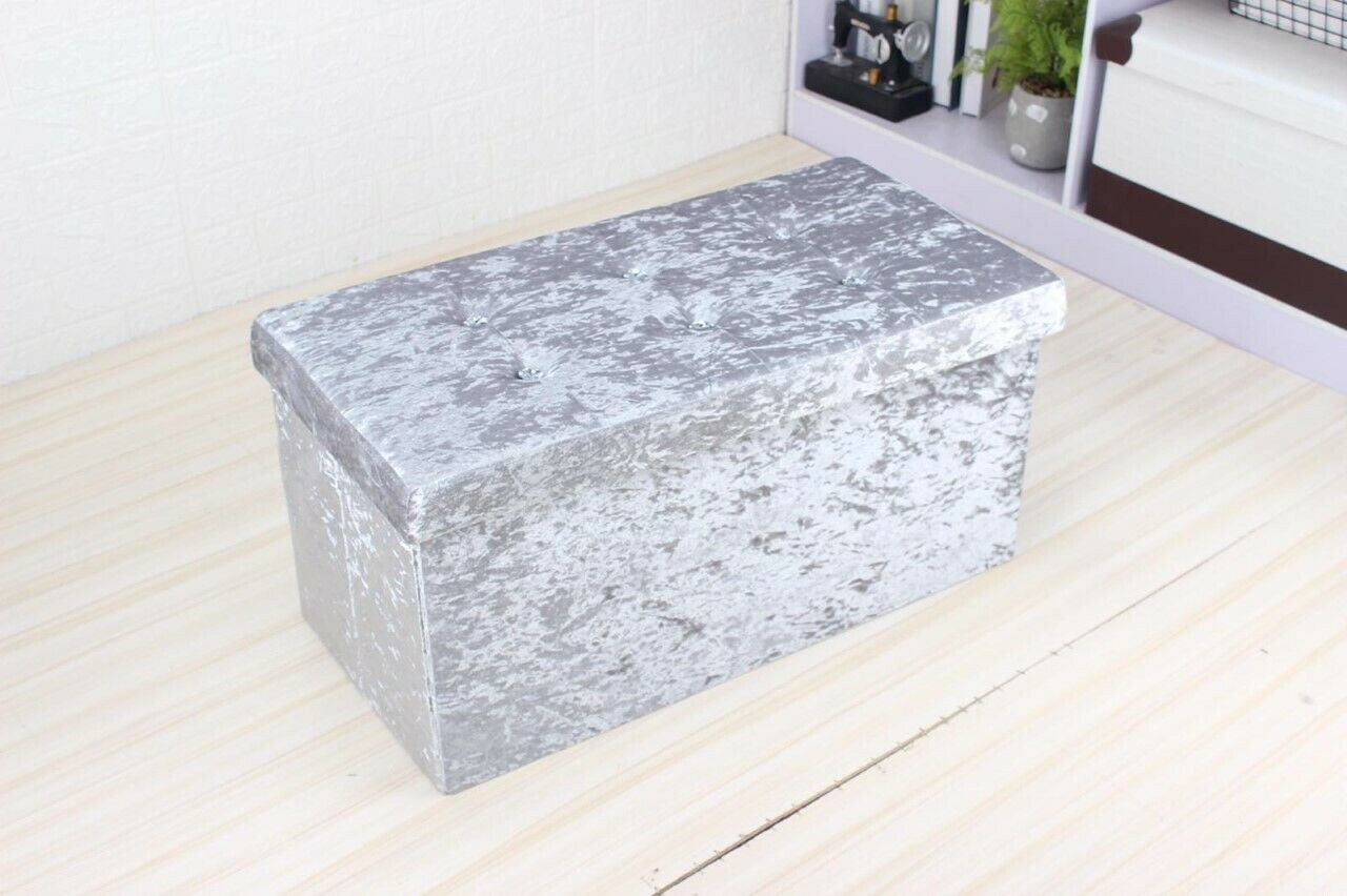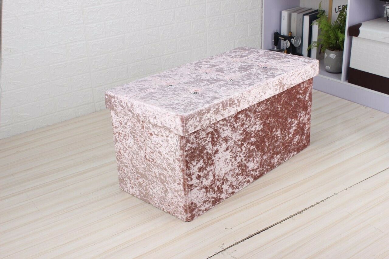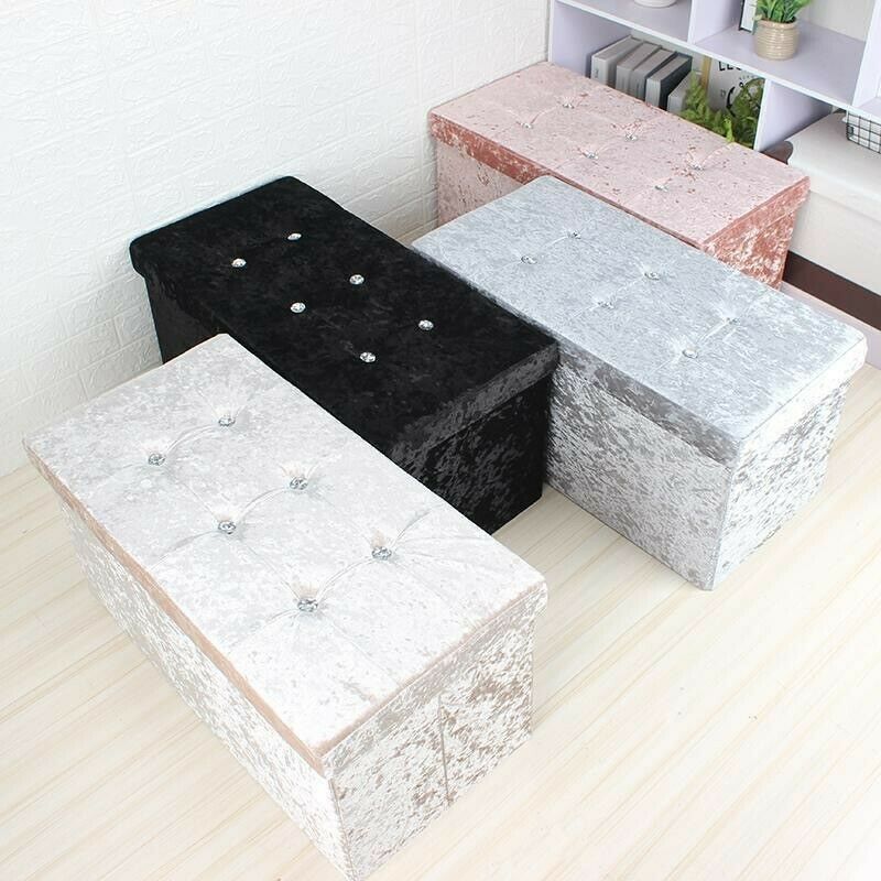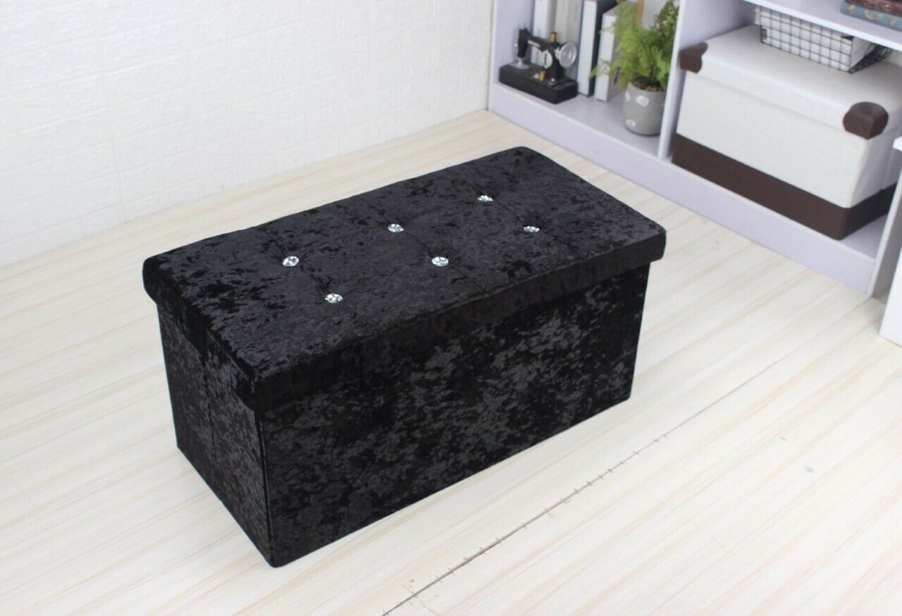 Crushed Velvet Storage Box Diamante Ottoman Folding Foot Stool Seat Bench