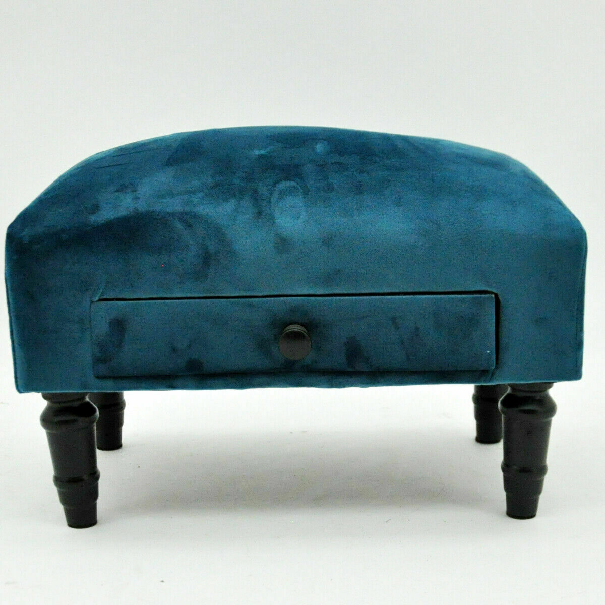 Deluxe Ottoman Footstool With Drawer Hand Made Lounge Padded Foot Stool Velvet