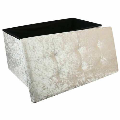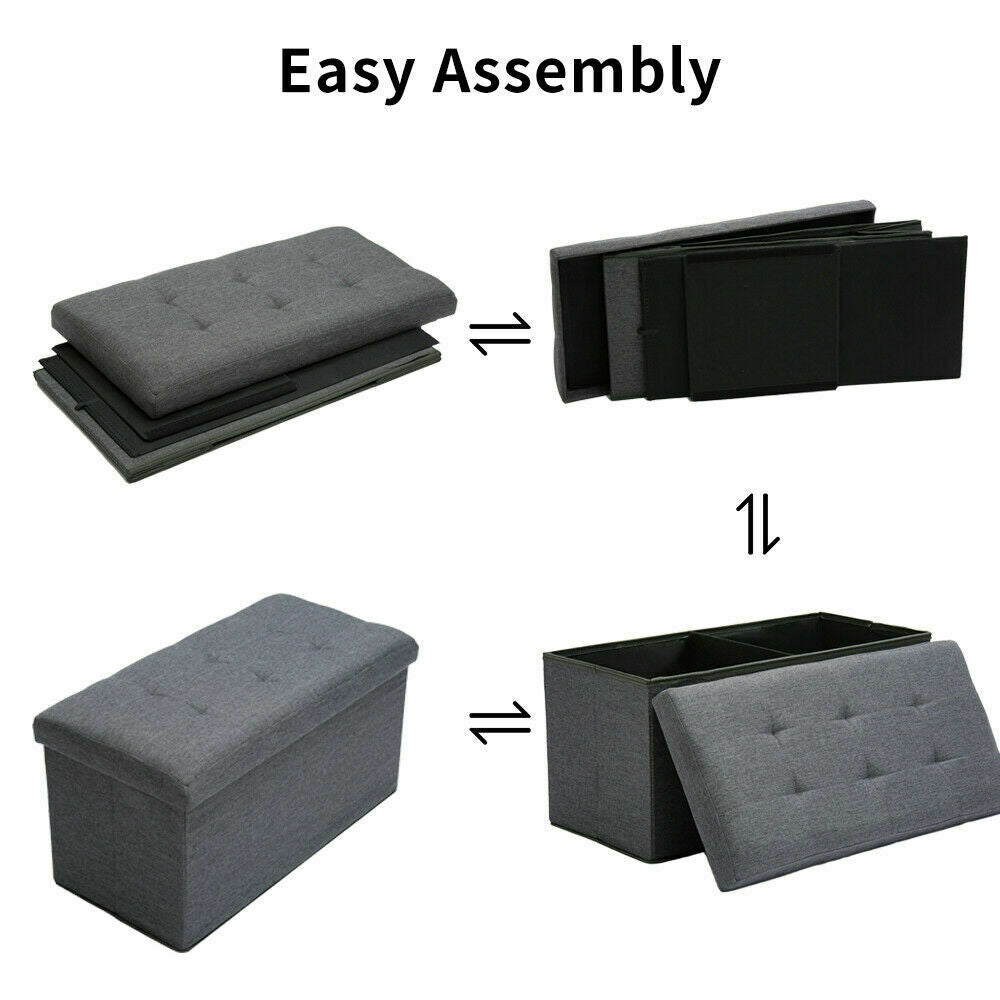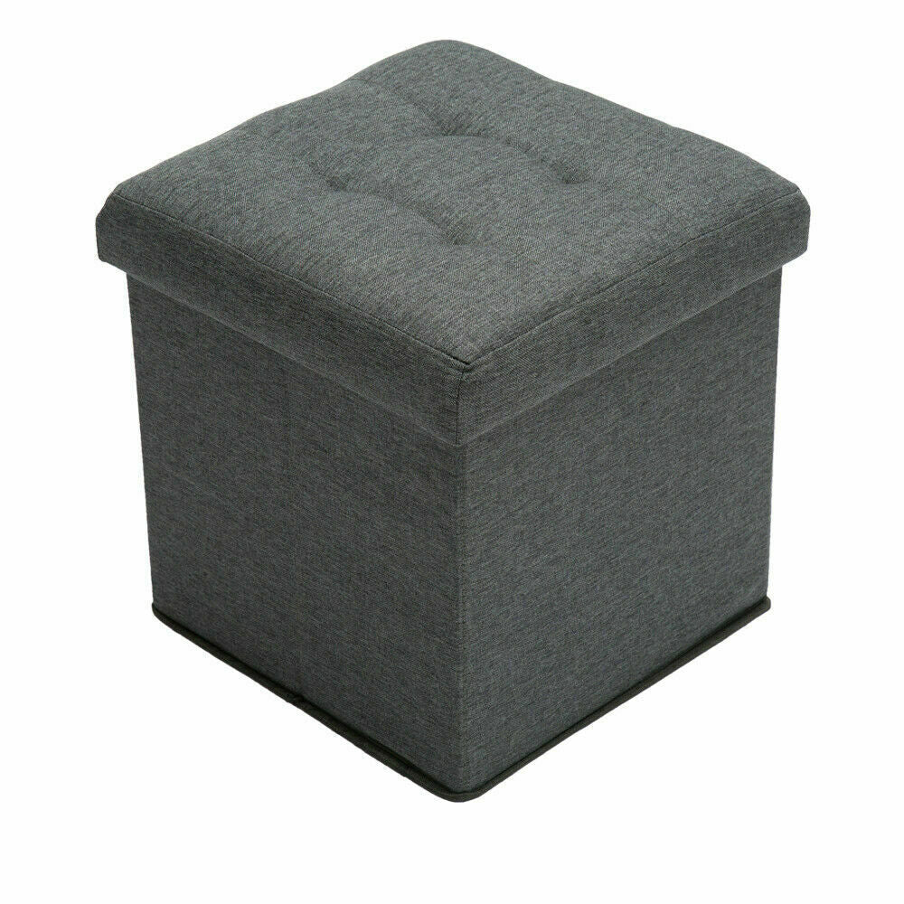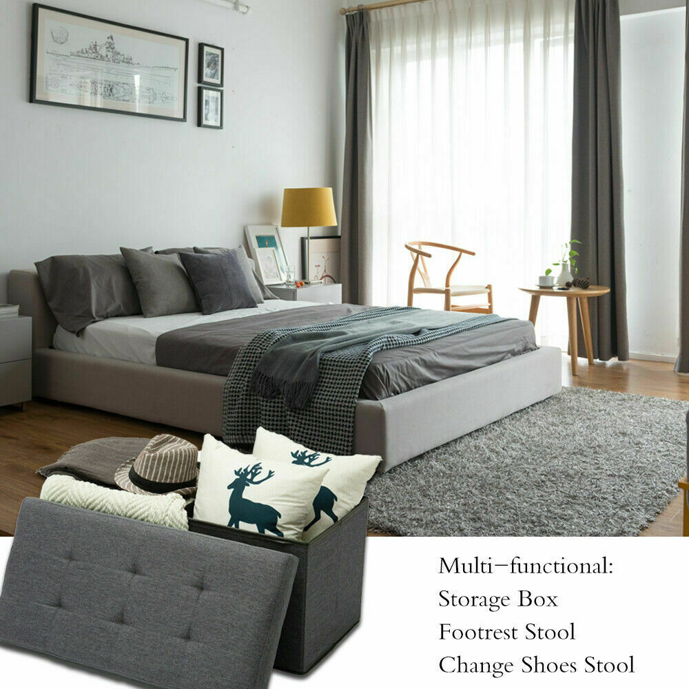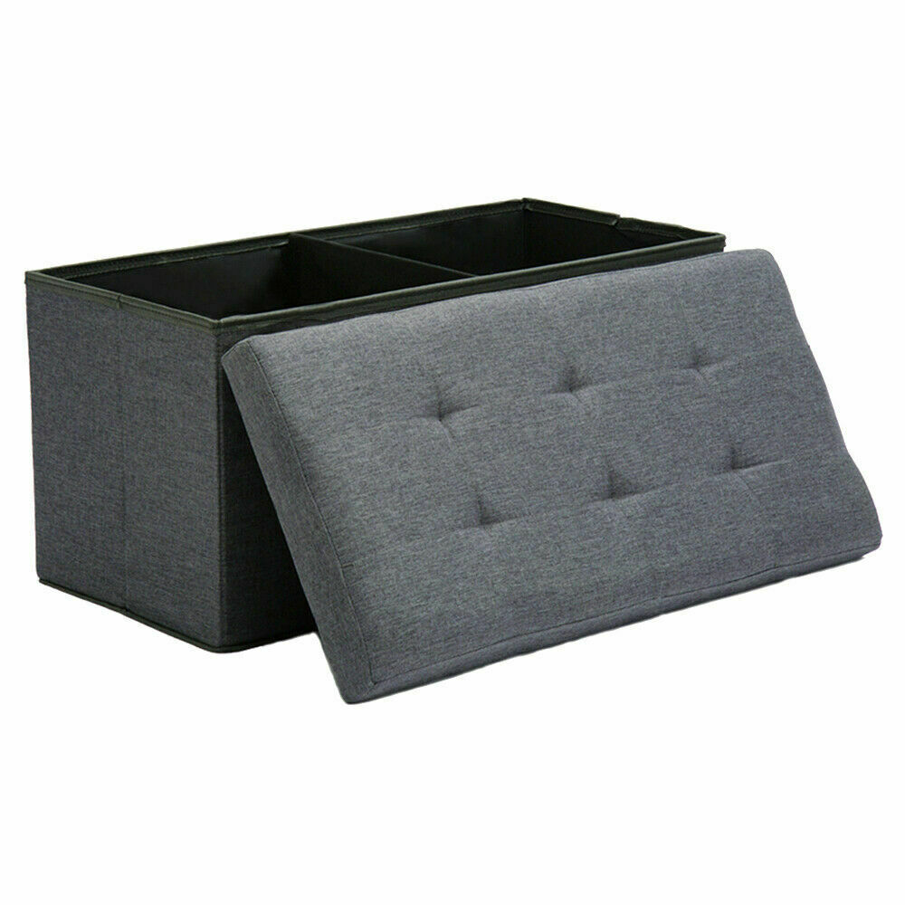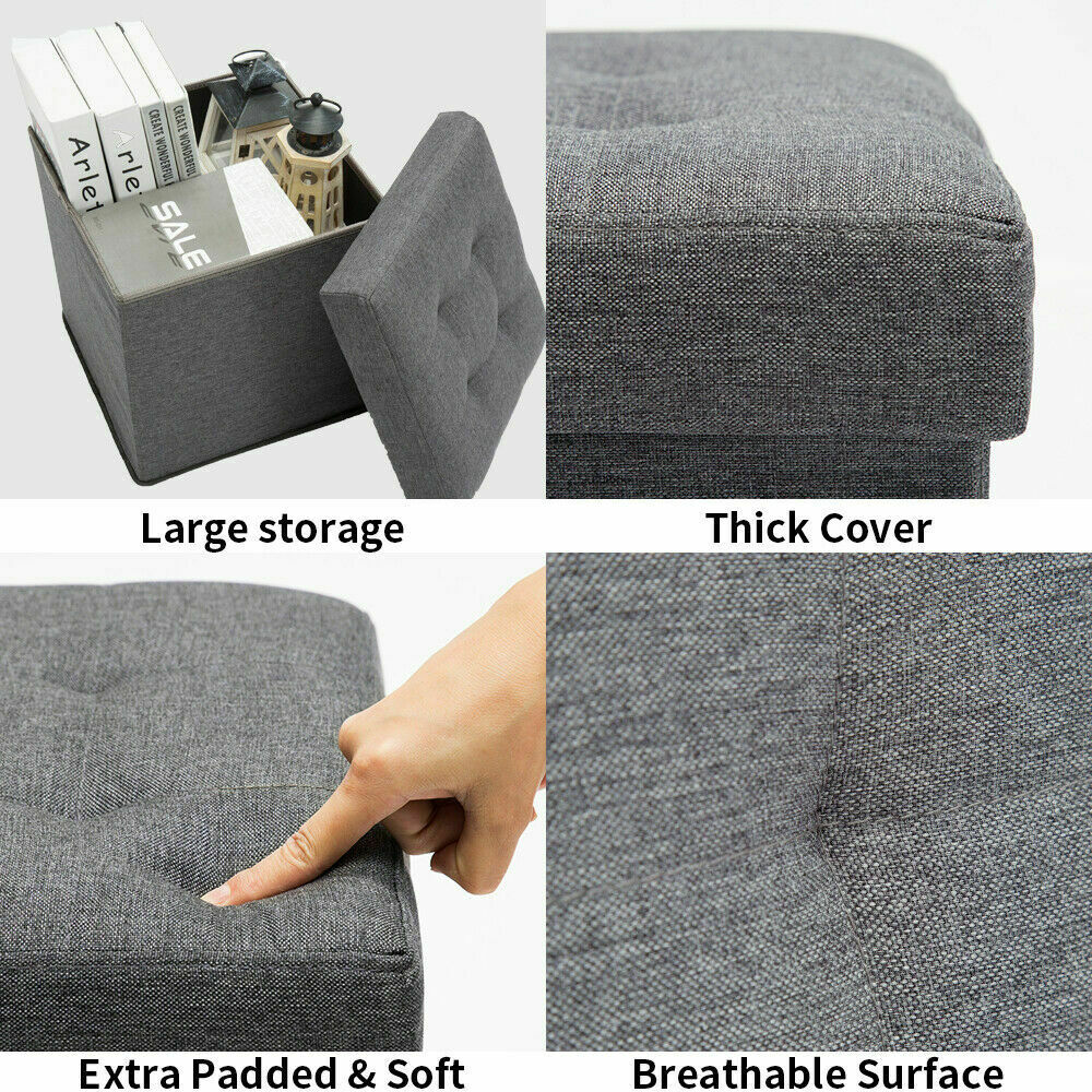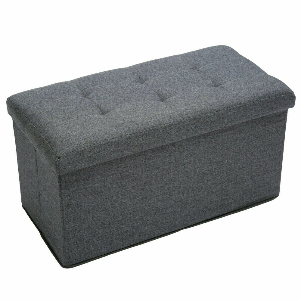 GREY LINEN LARGE FOLDING STORAGE OTTOMAN POUFFE SEAT FOOT STOOL STORAGE BOX UK