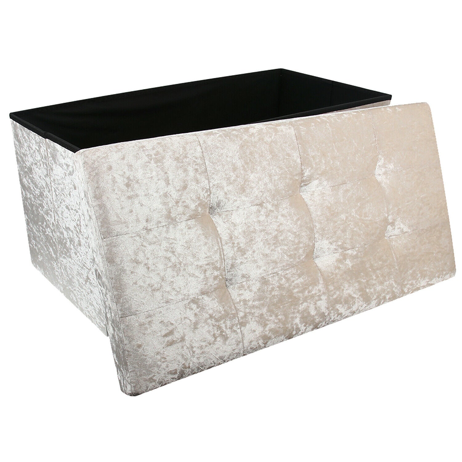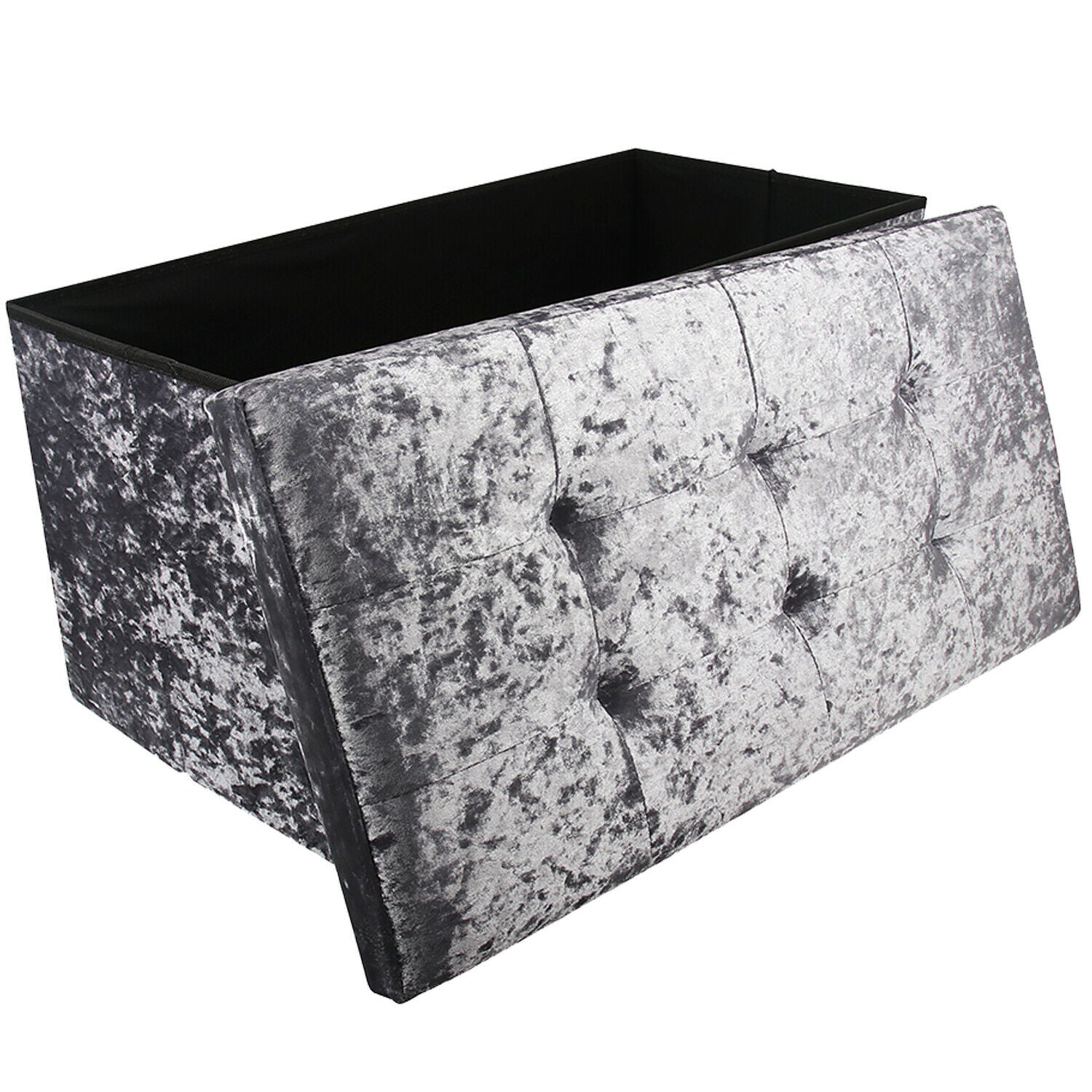 Large 2 Seater Crushed Velvet Foldable Ottoman Storage Box Double Bed Foot Stool