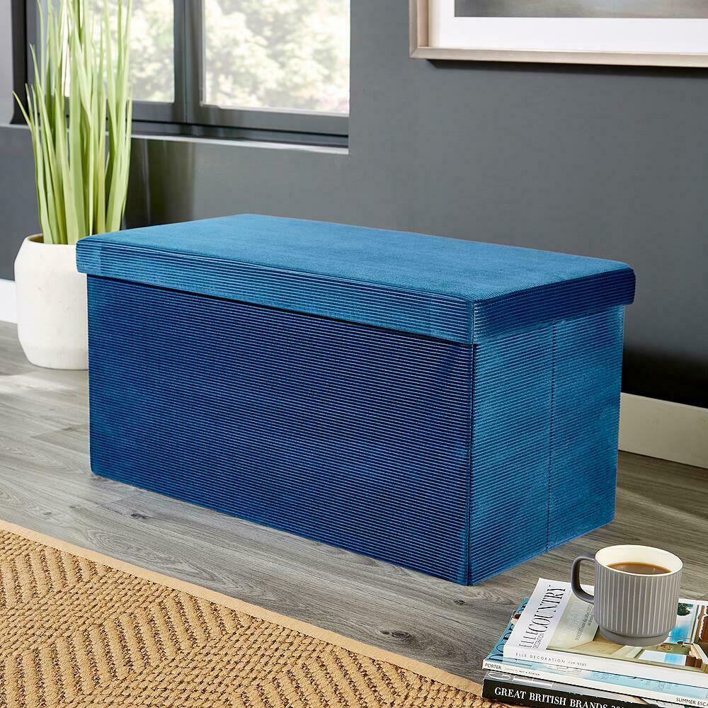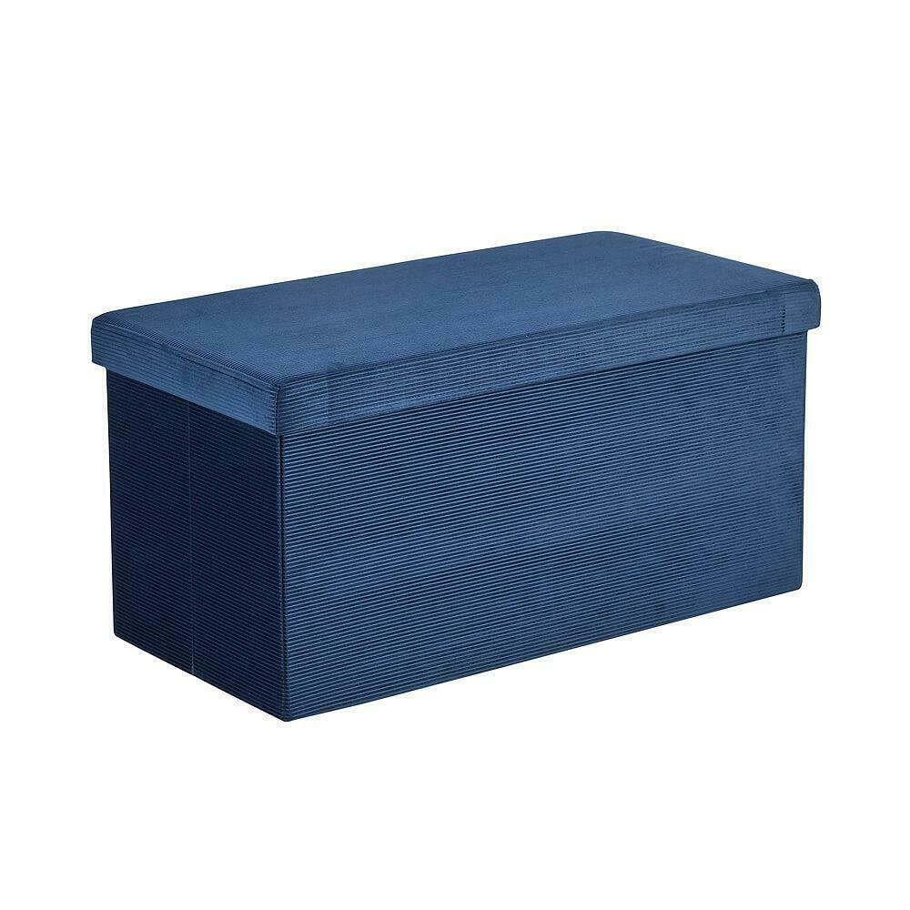 Large Folding Ottoman Navy Blue Ribbed Cord Fabric Chest Storage Space Box