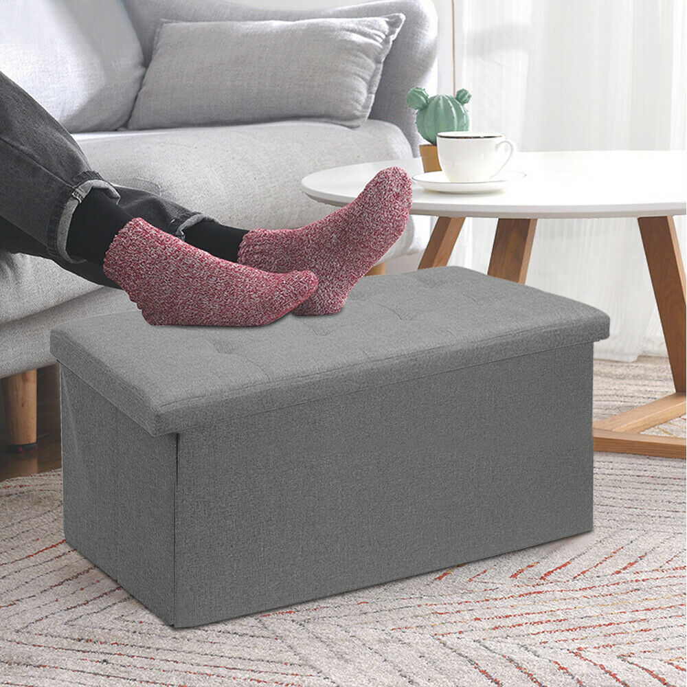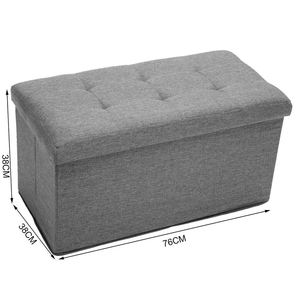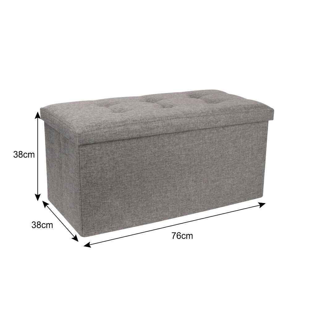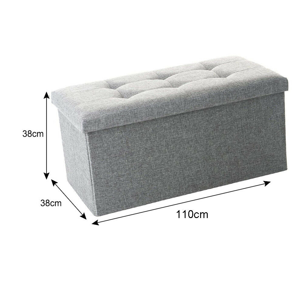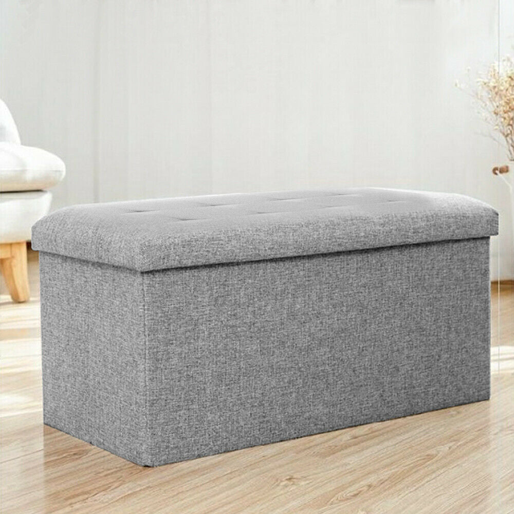 Large Grey Fine Linen Folding Storage Ottoman Pouffe Seat Foot Stool Storage Box
