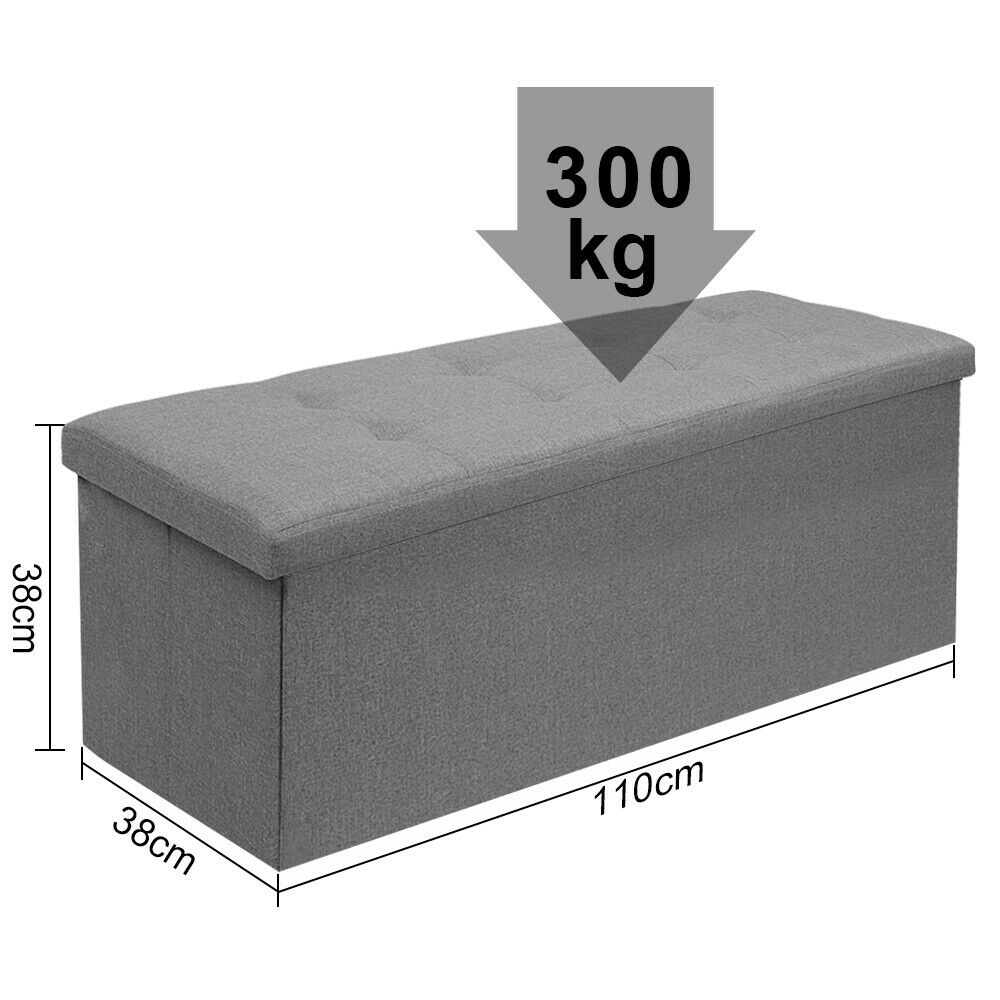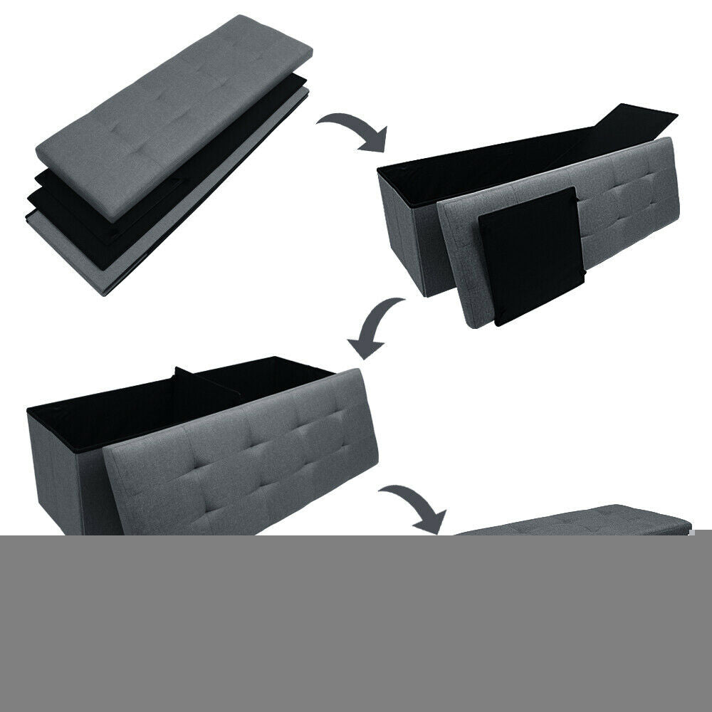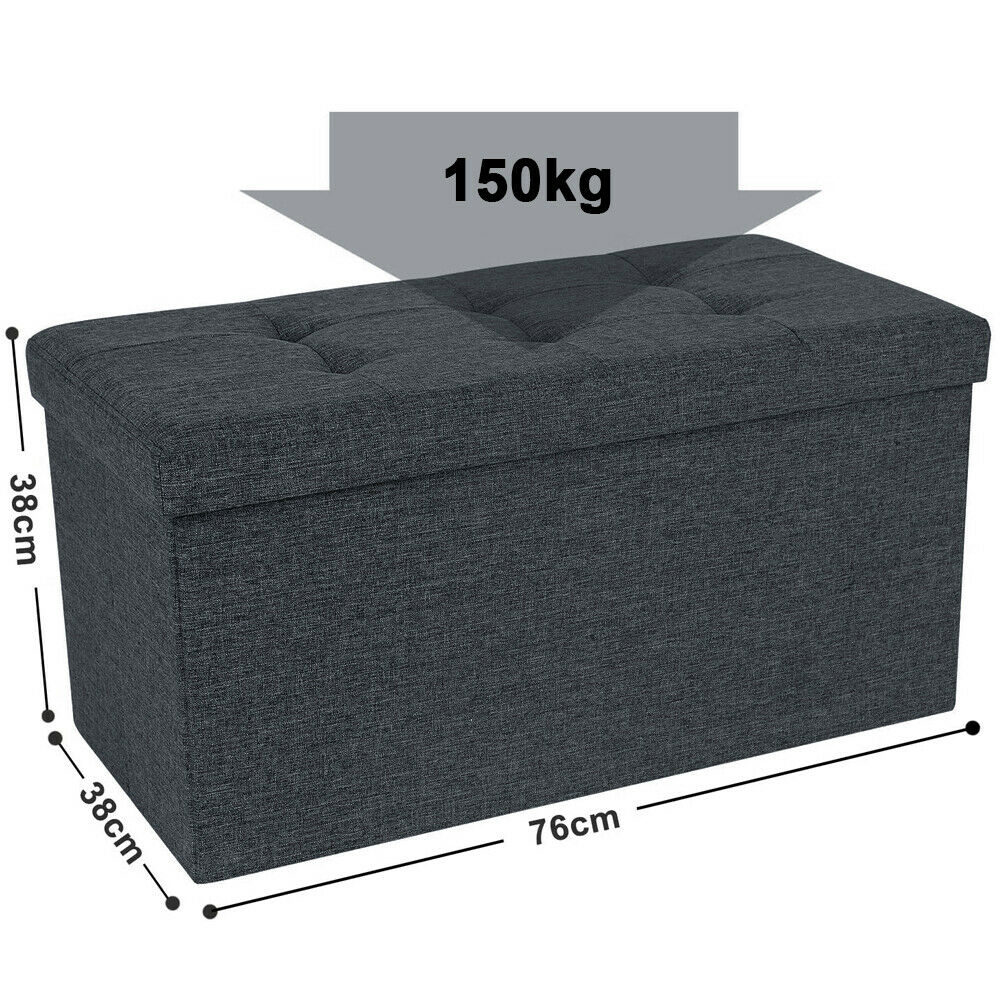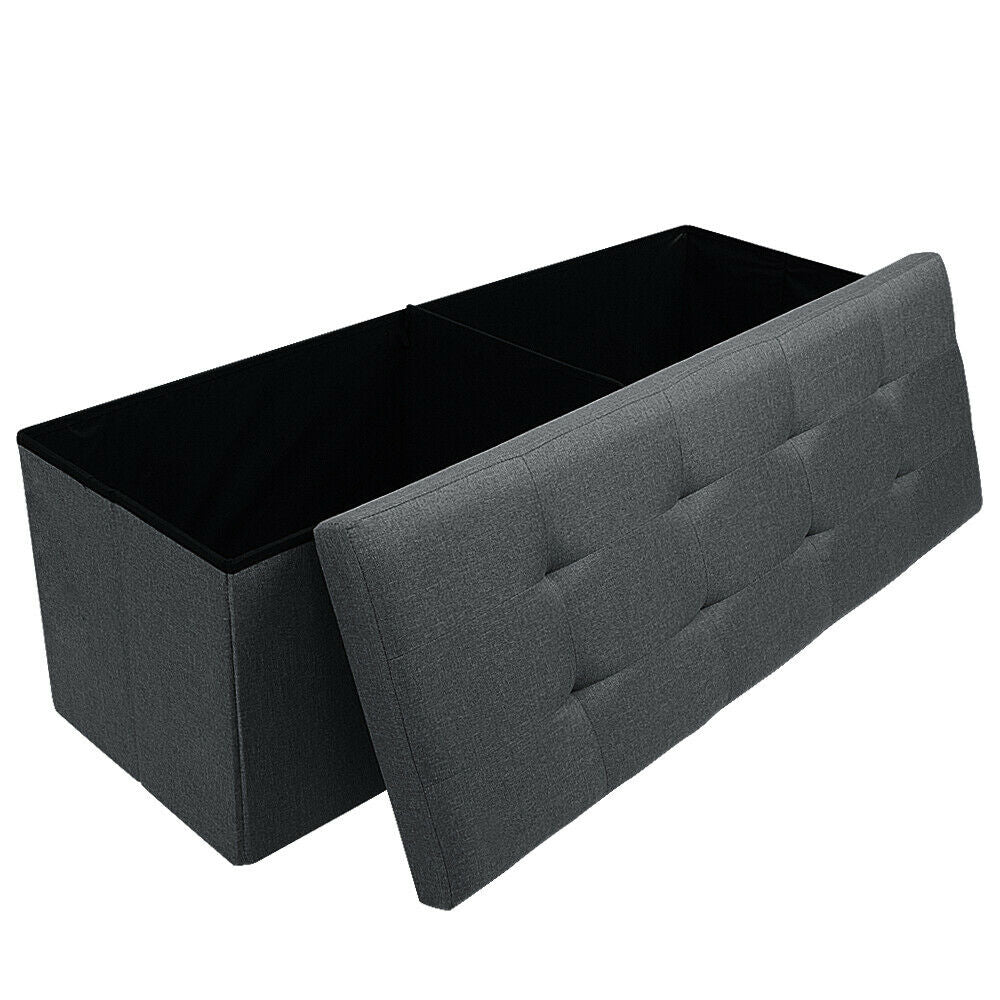 Large Grey Fine Linen Folding Storage Ottoman Pouffe Seat Foot Stool Storage Box
