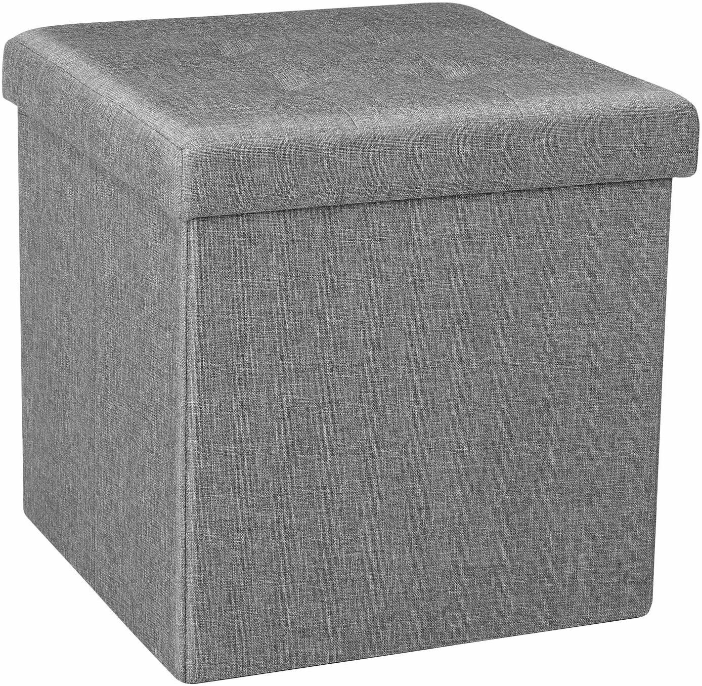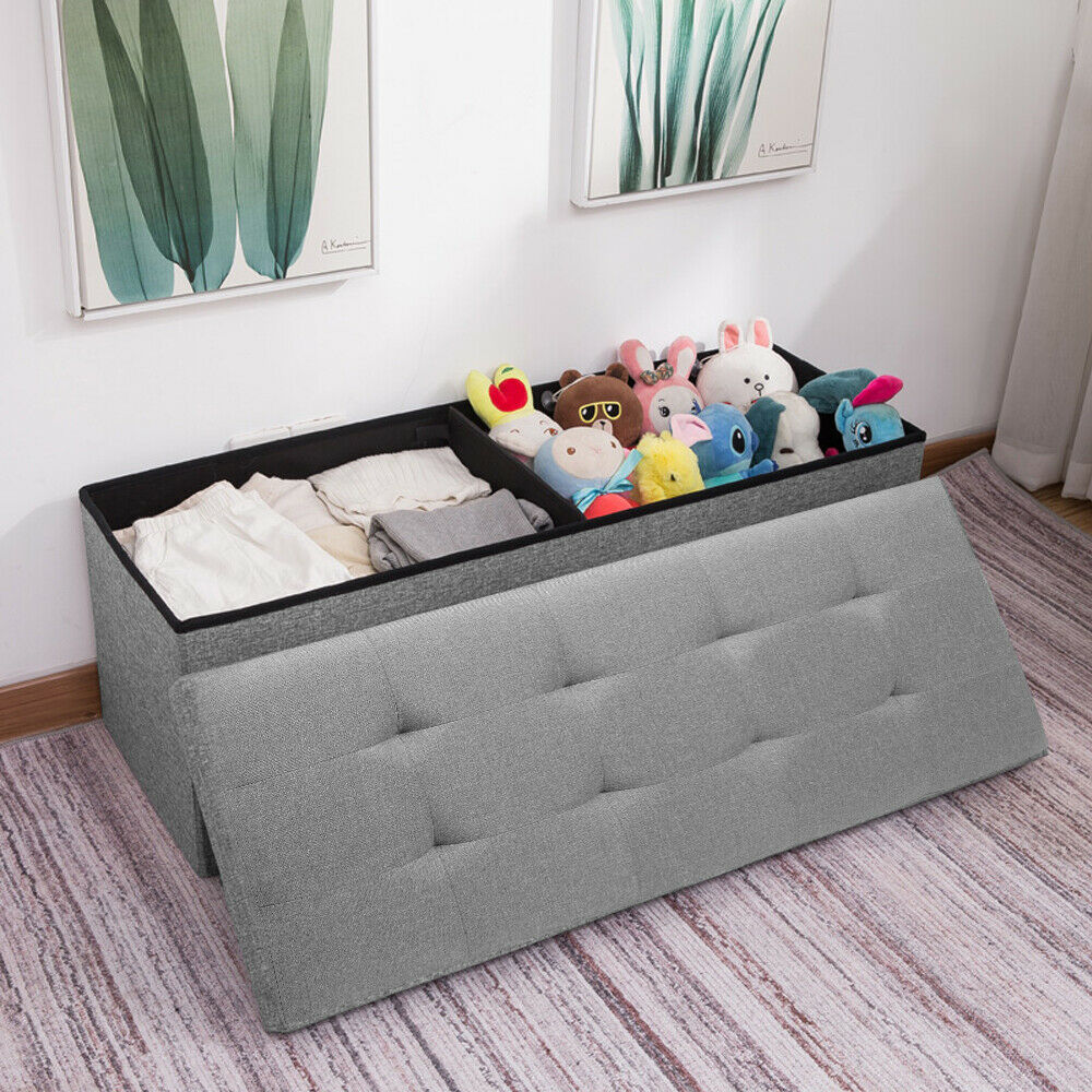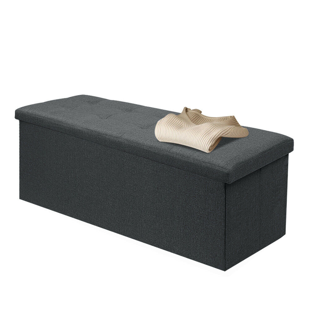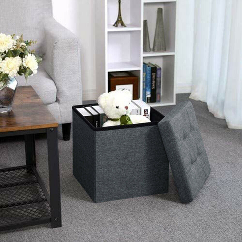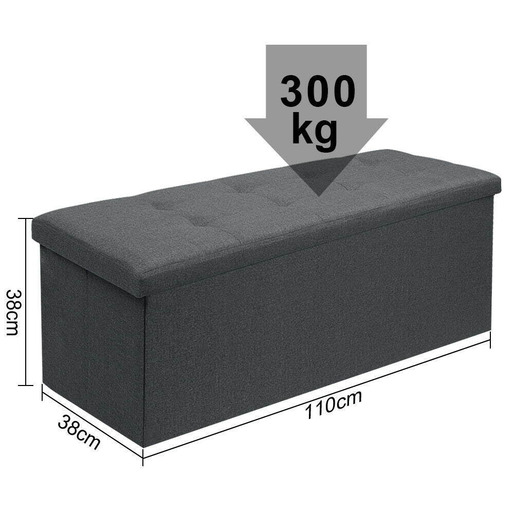 Large Grey Fine Linen Folding Storage Ottoman Pouffe Seat Foot Stool Storage Box