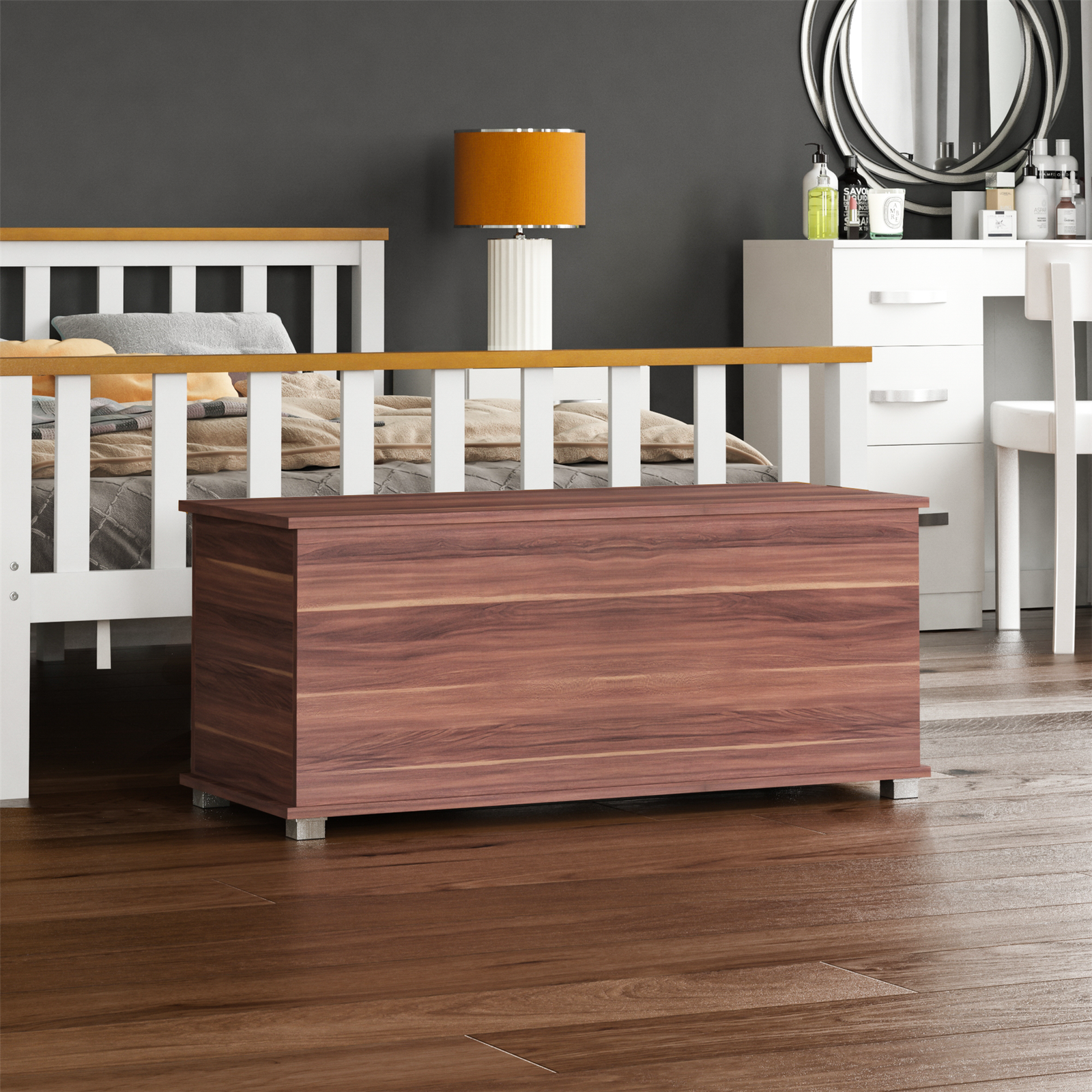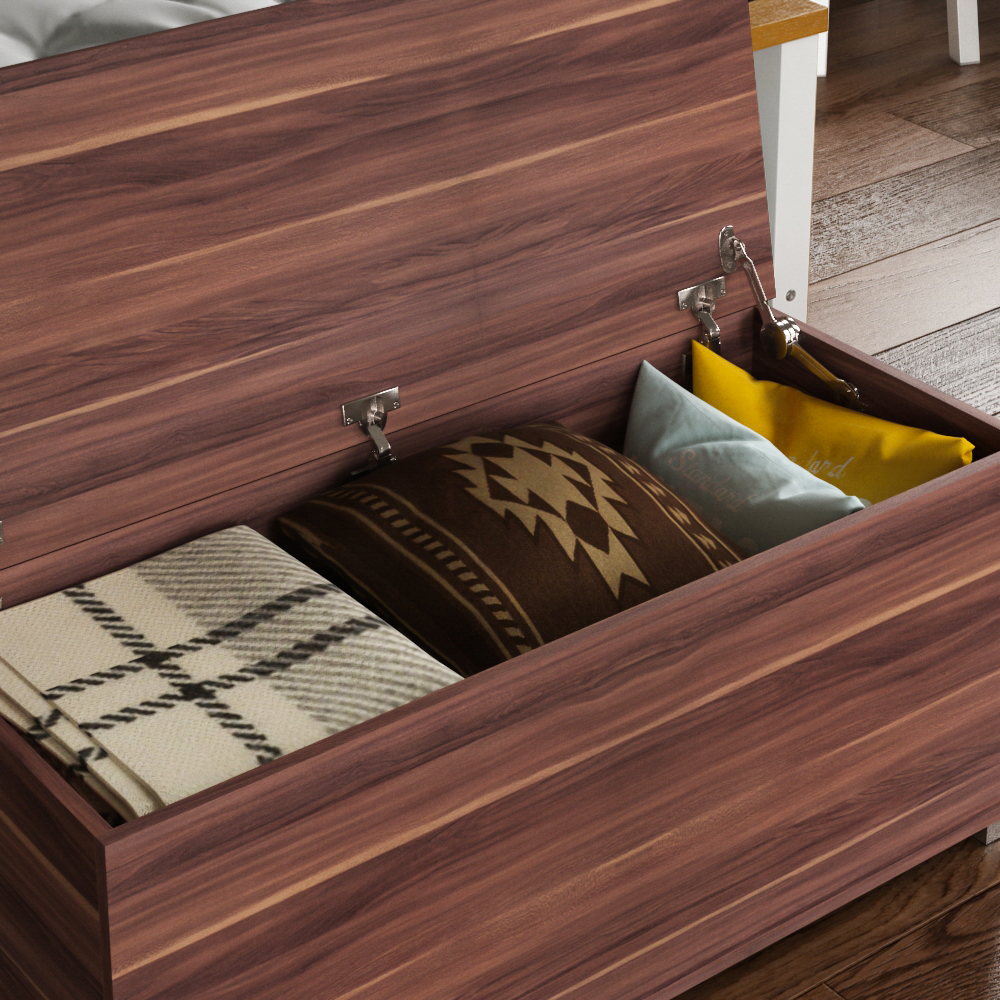 Storage Ottoman Chest Walnut Toy Chest Bedding Blanket Box Large Wooden