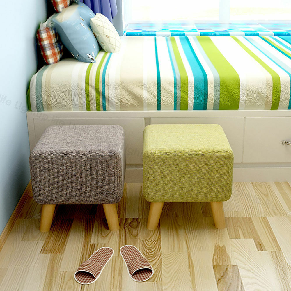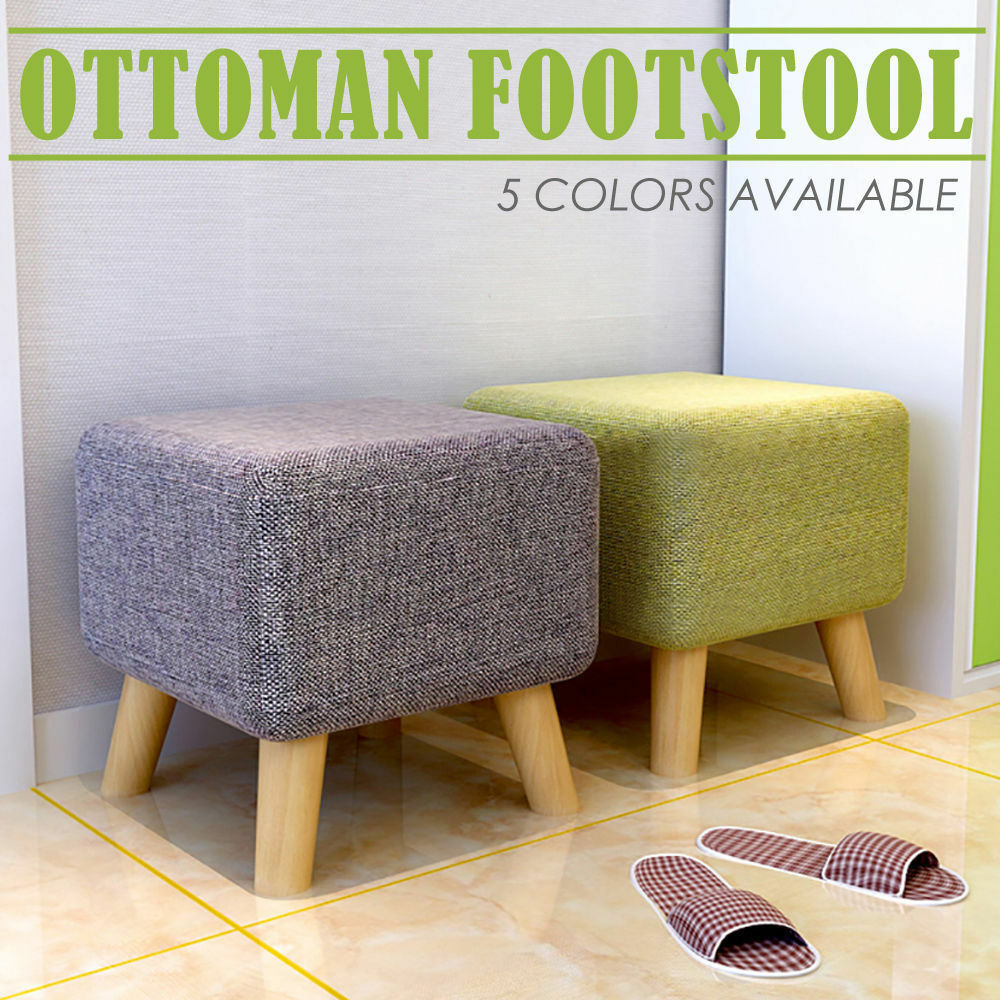 Stylish PU/Upholstered Large Footstool Ottoman Pouffe Stool Wooden Legs 4Colours