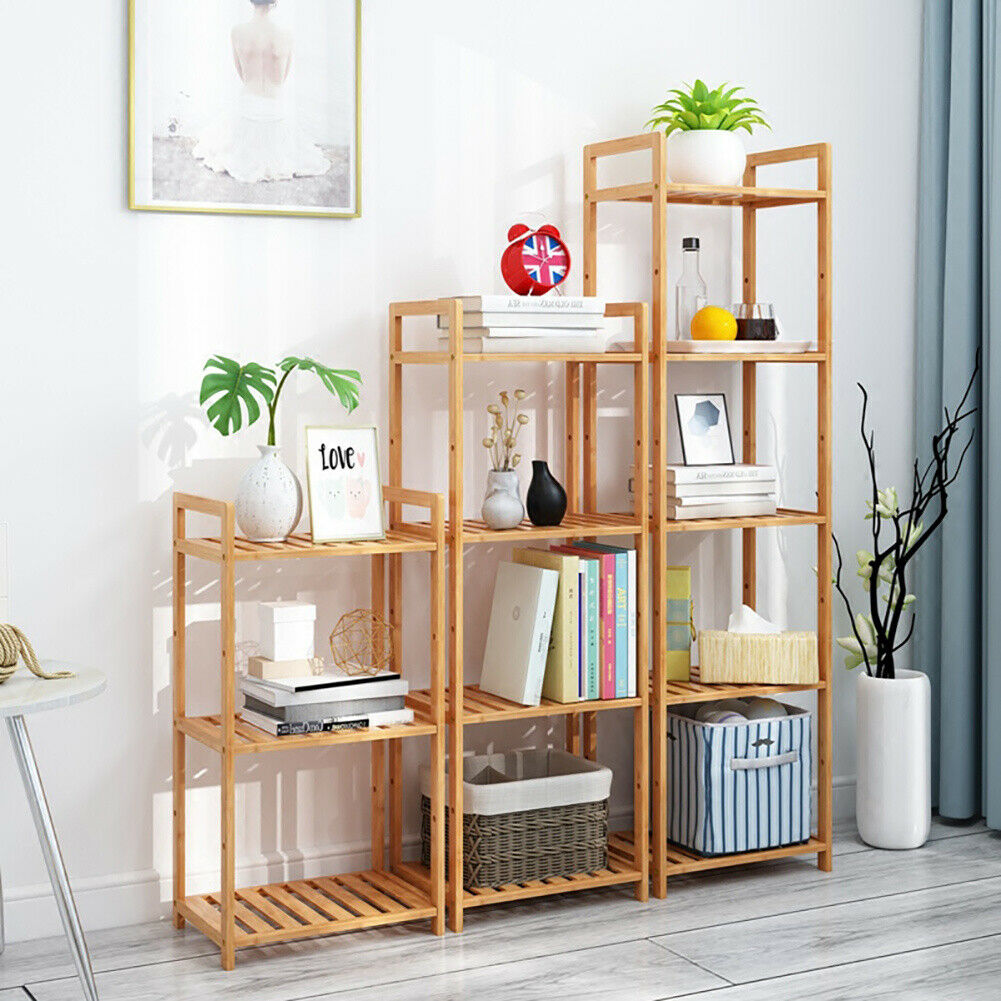 3/4/5 Tier Bamboo Wood Ladder Storage Display Unit Plant Flower Book Shelf Rack
