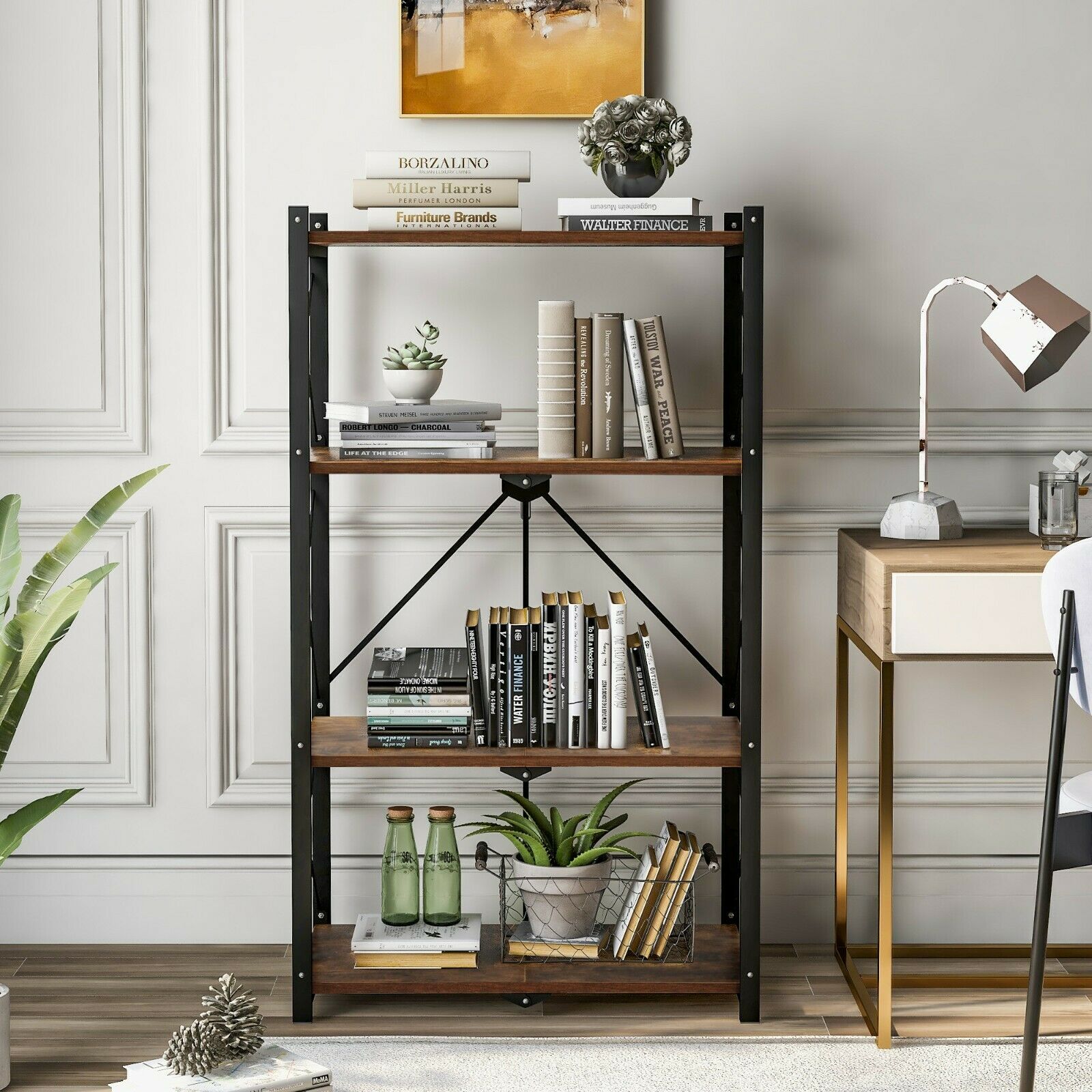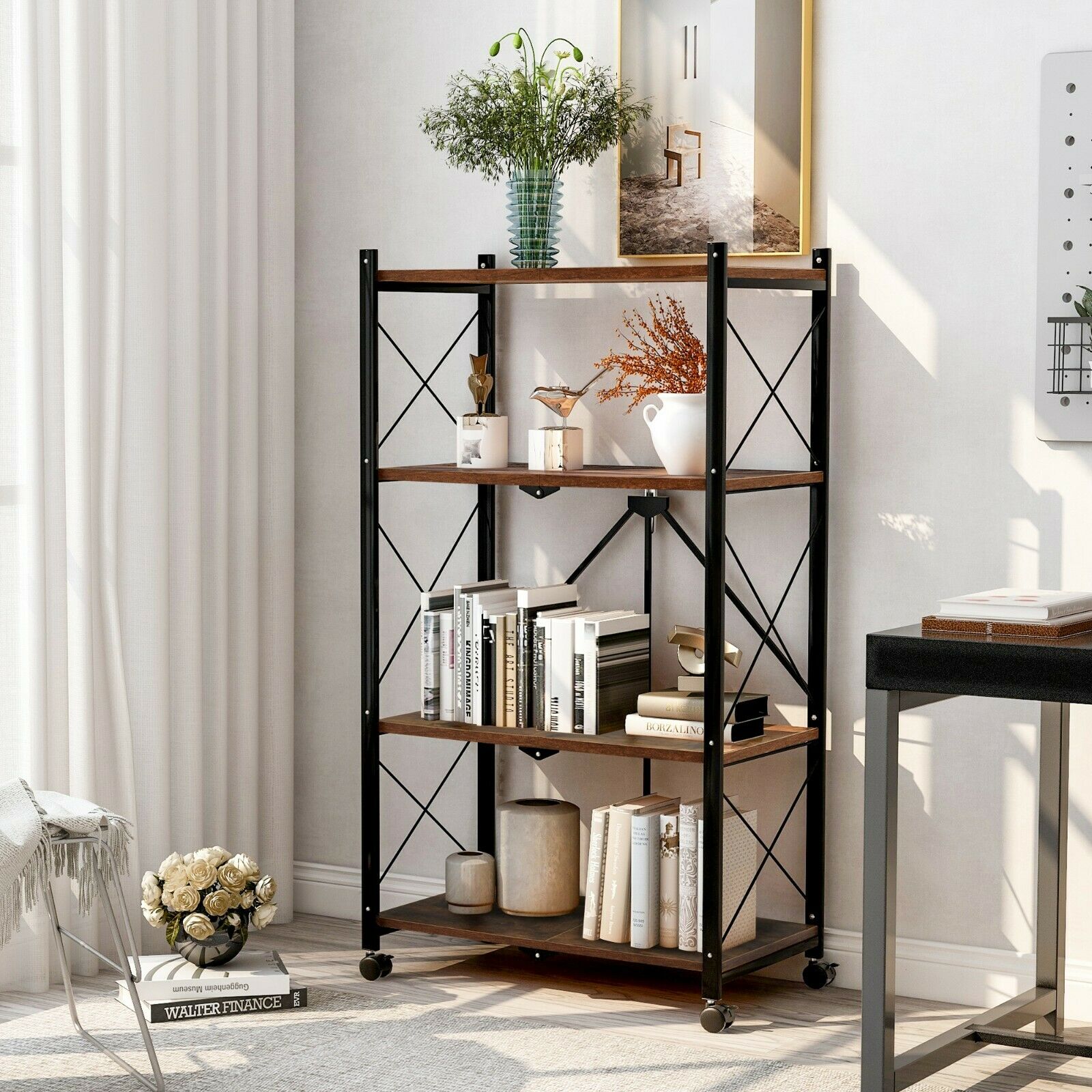 4-Tier Foldable Bookcase Ladder Shelf Bookshelf Plant and Flower Stand Storage