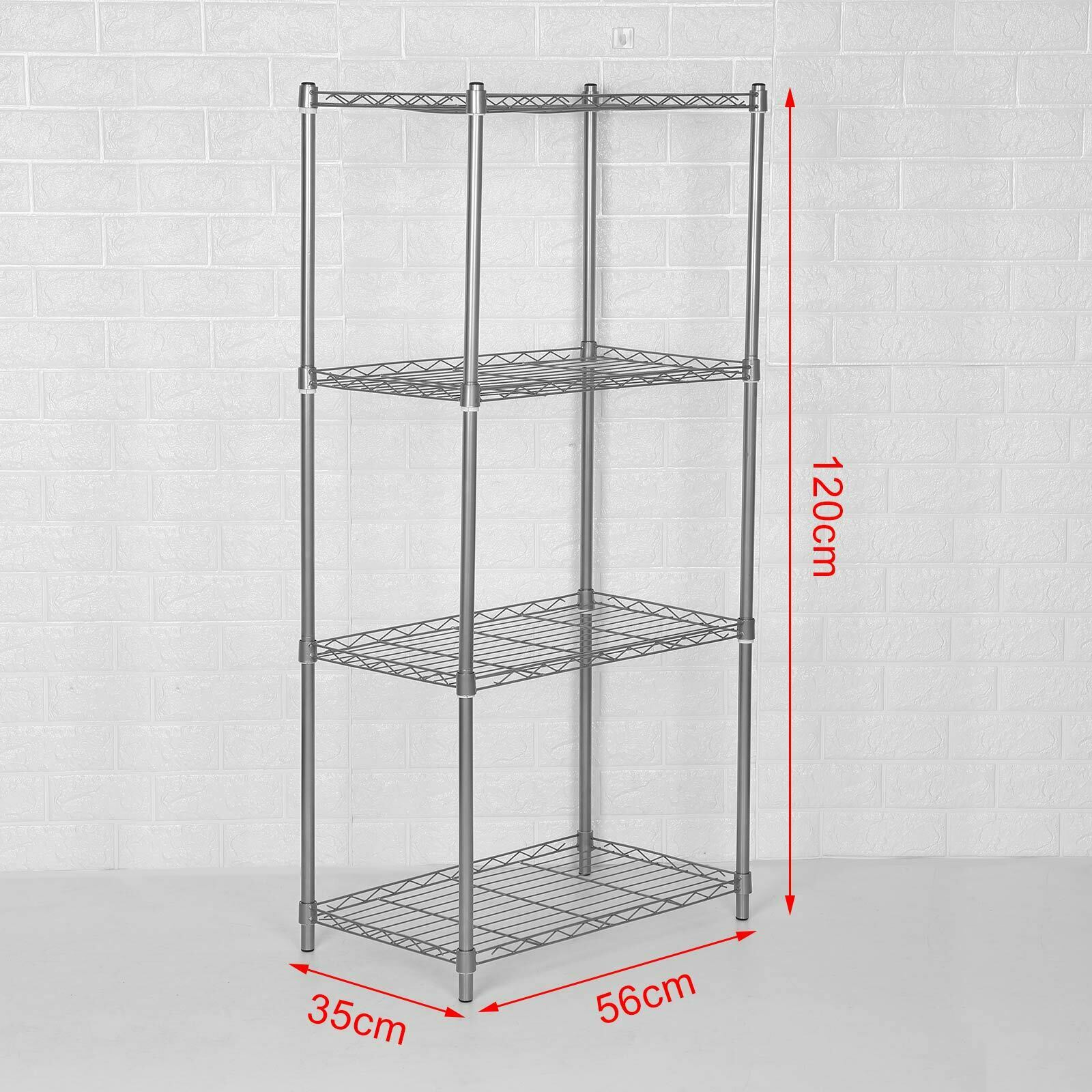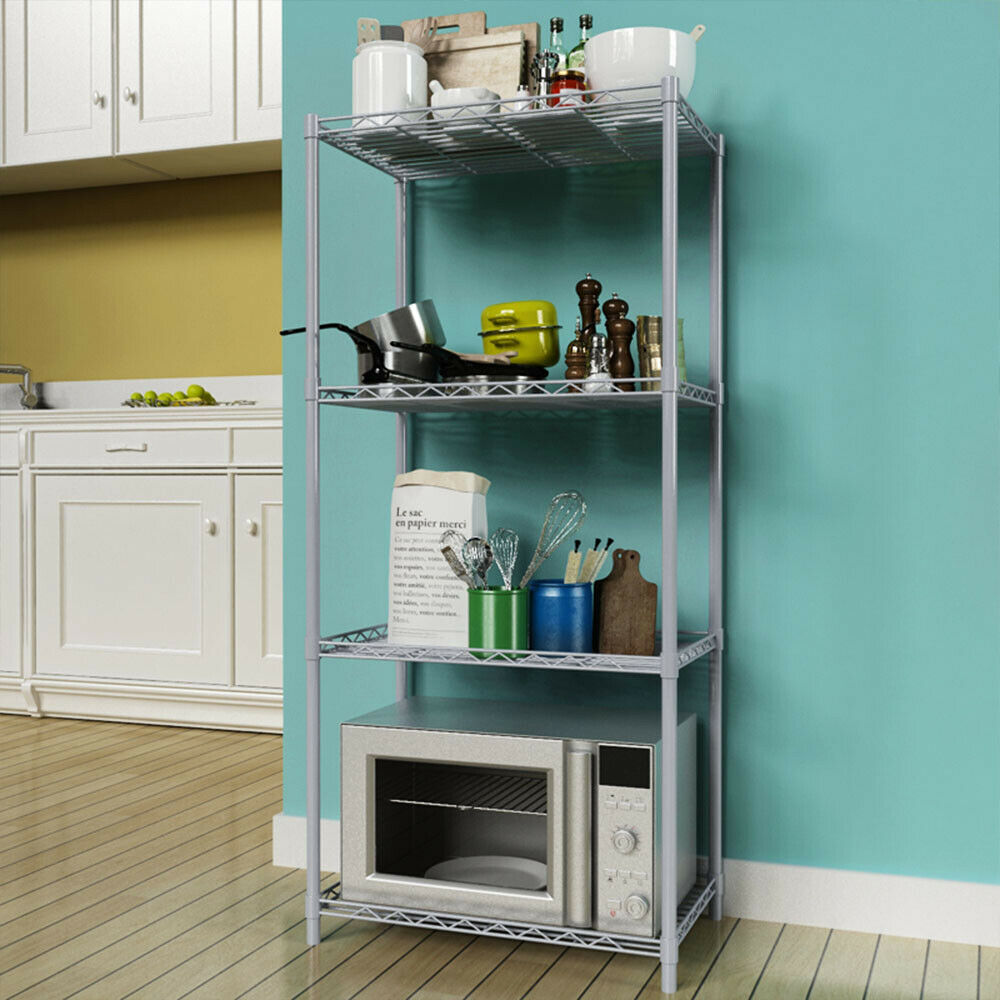 4 Tier Silver Metal Storage Rack/Shelving Wire Shelf Kitchen/Office Unit Stand