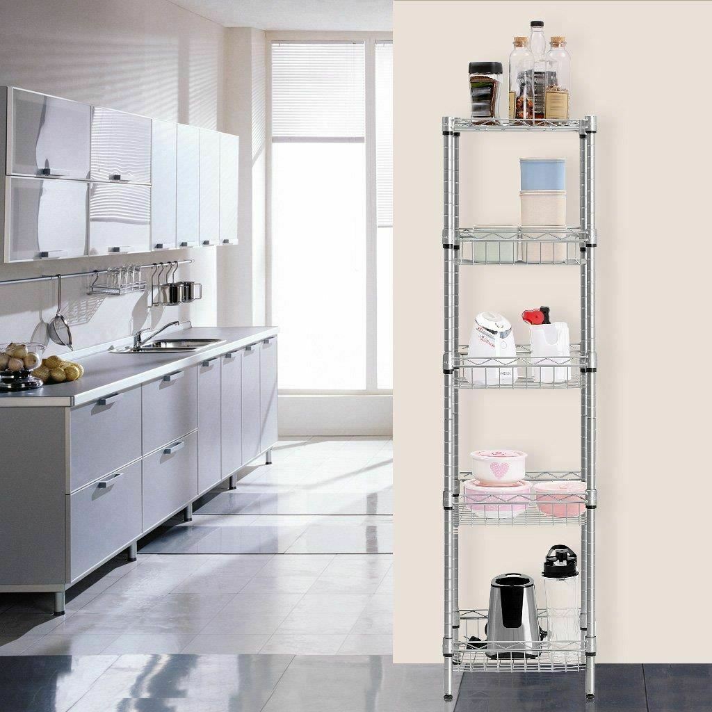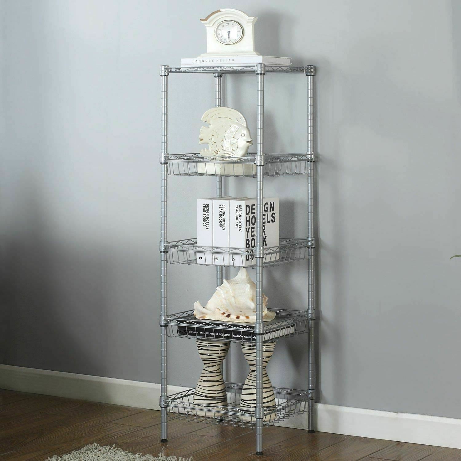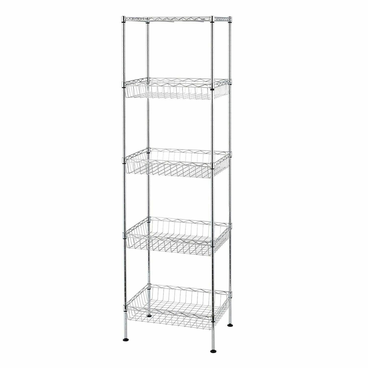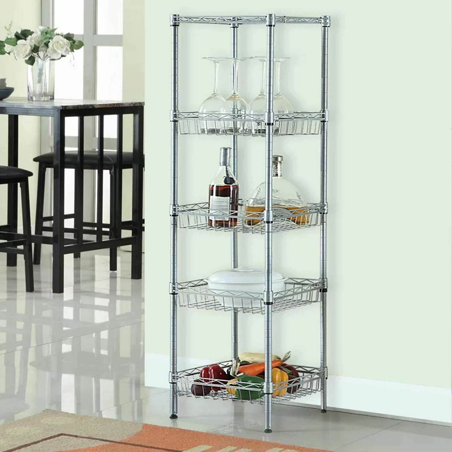 5 Tier Chrome Wire Shelving Baskets Kitchen Storage Organiser Unit Rack Holder