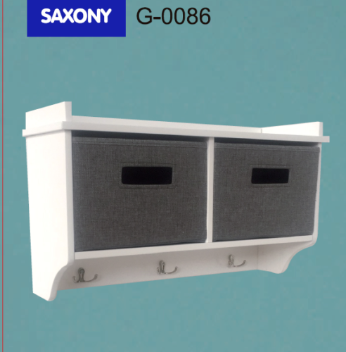 Bathroom 2 Bins Wall Floating Storage Shelf with 2 storage bins,Hooks
