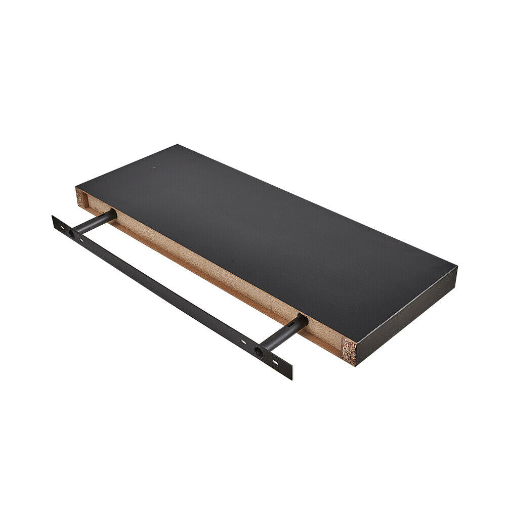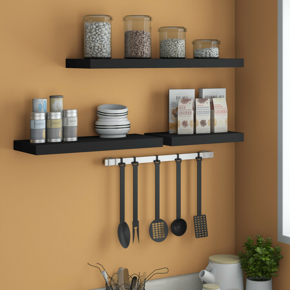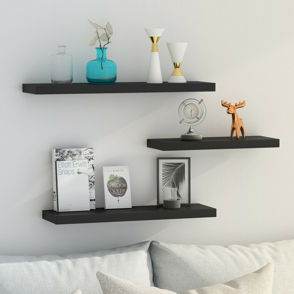 Black 3 x Floating Wall Shelf Wooden Shelves Wall Storage 80cm -