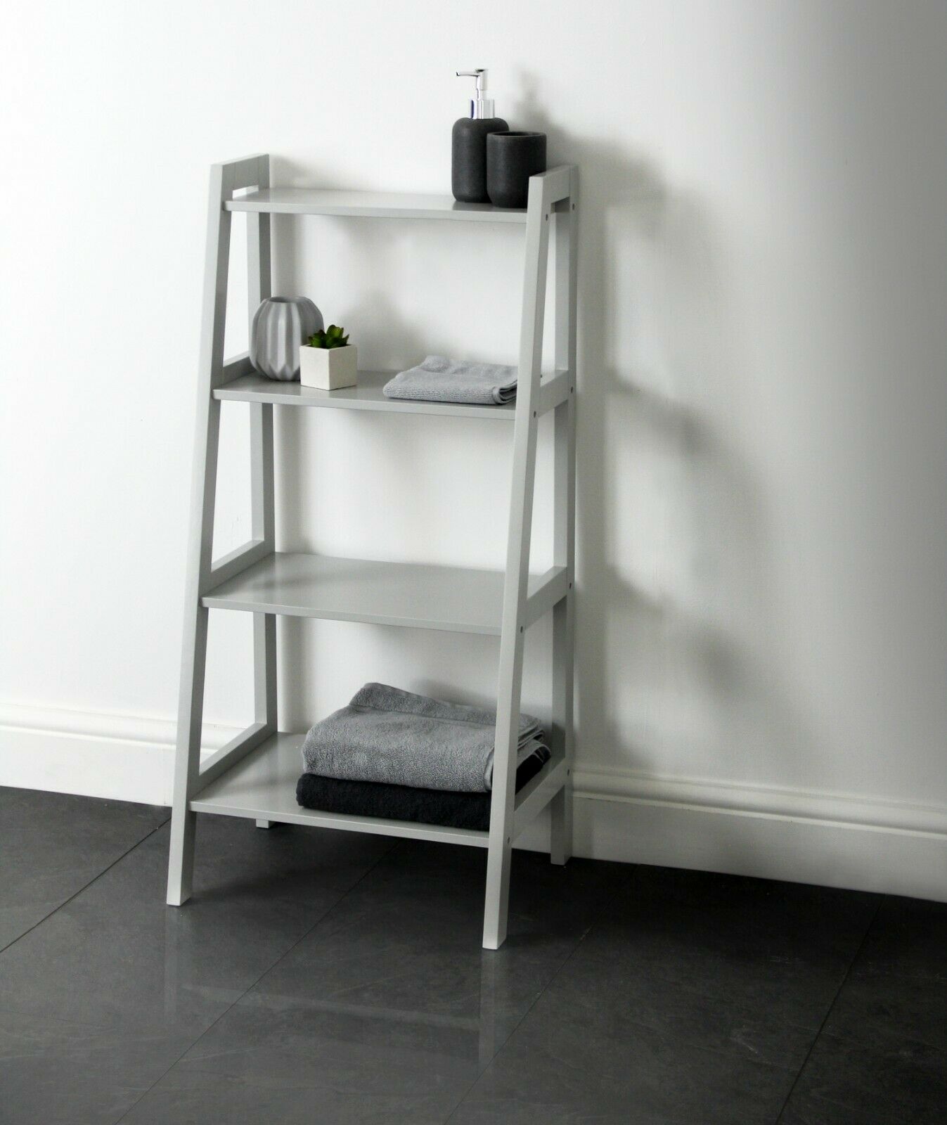 Grey White 4 Tier Ladder Style Storage Shelving Unit Bathroom Living Home House