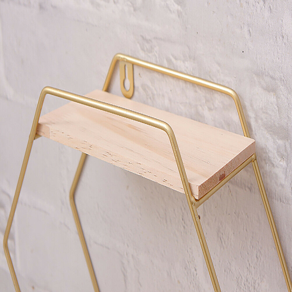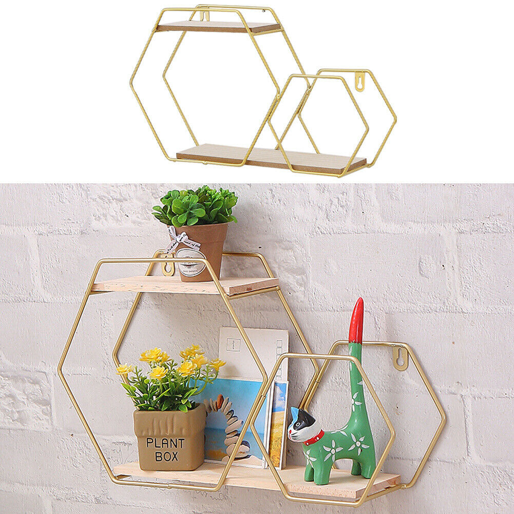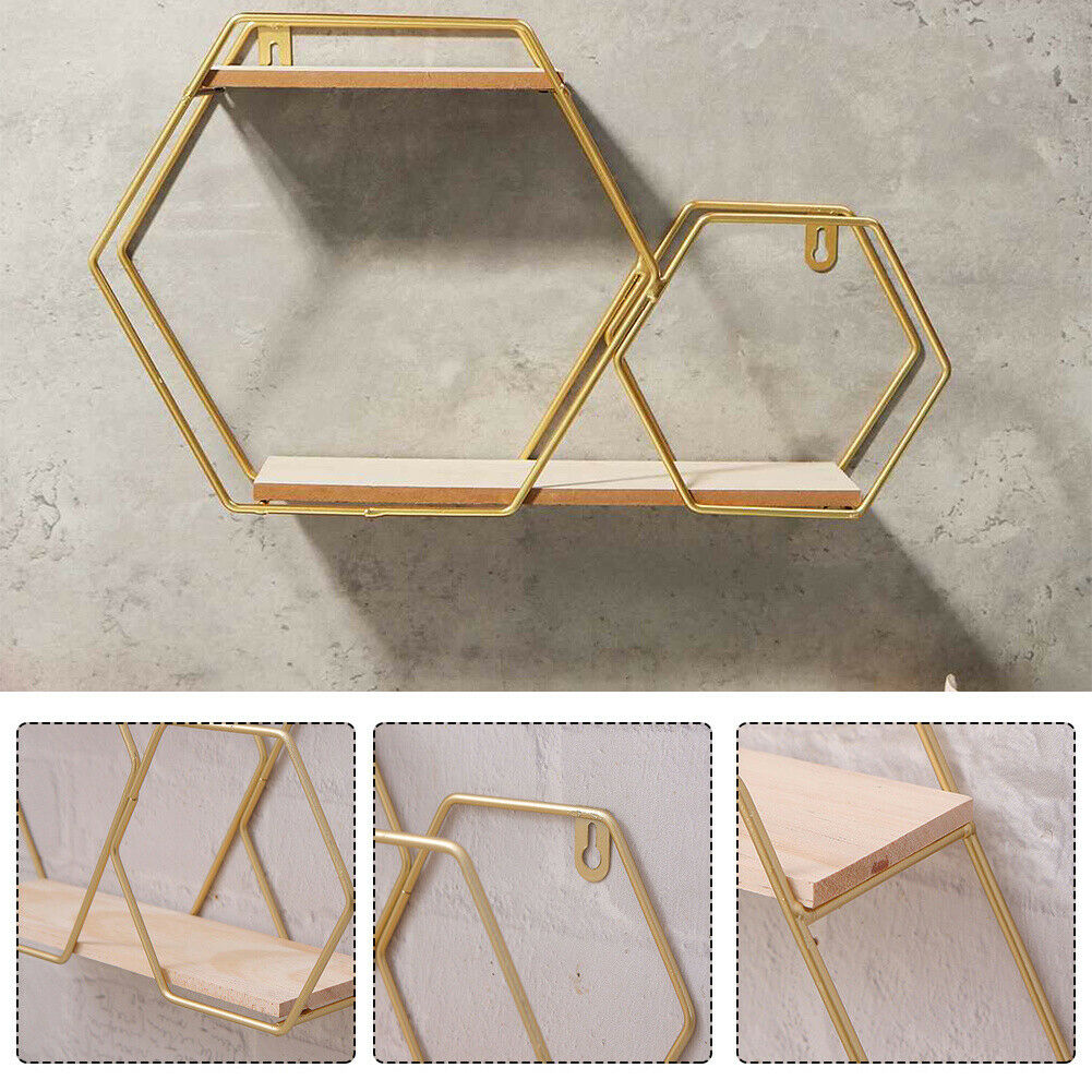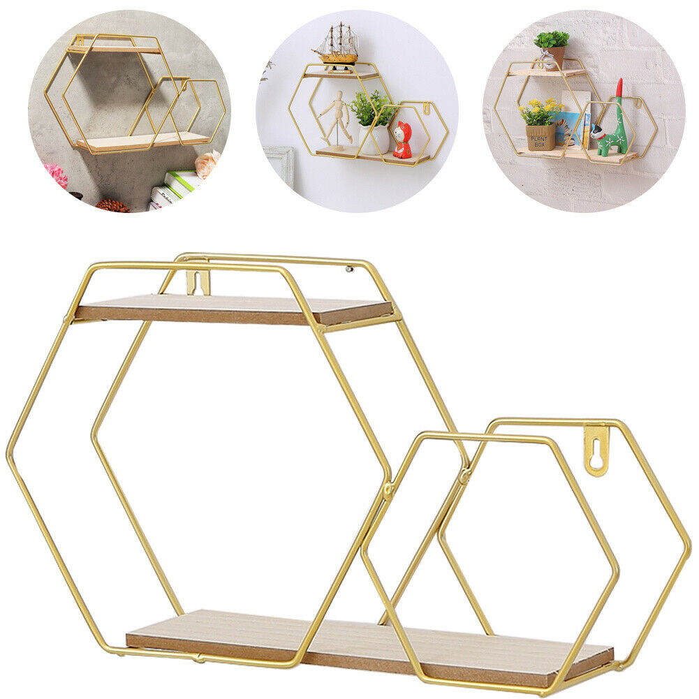Hexagon Wall Mounted Shelf Display Rack Gold Metal Storage Shelving Home Decor