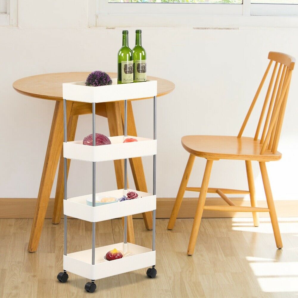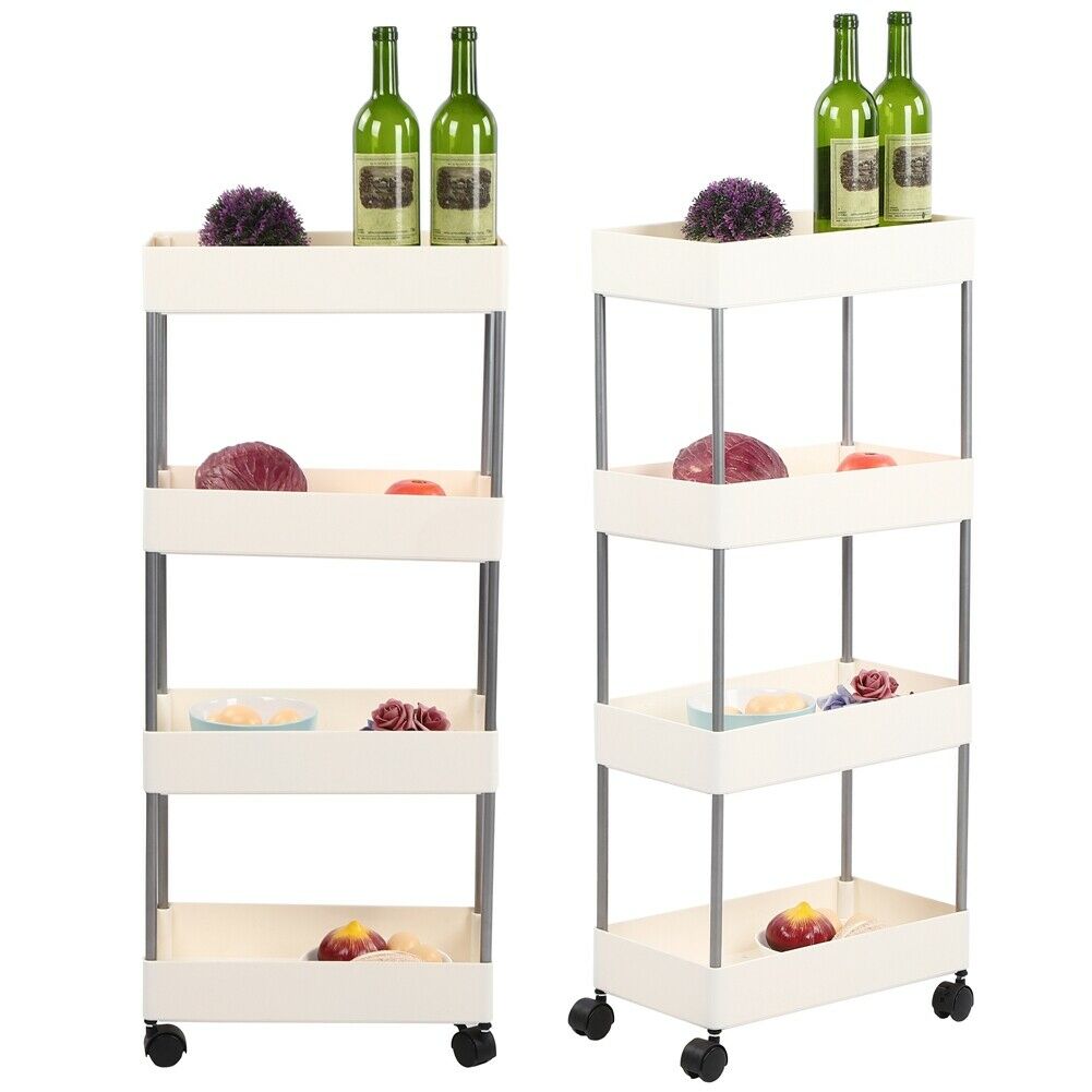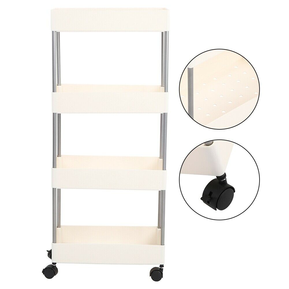 Kitchen Trolley Cart Bathroom Laundry Storage Rack Shelf Rolling Wheel 4 Tier
